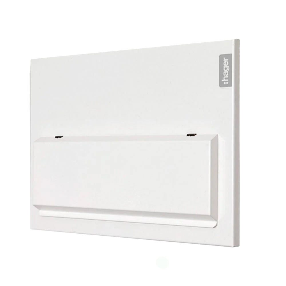 Hager's 'Design 10' VMLF916CU High Integrity flush consumer unit offers fully flexible configuration across two banks of MCBs - protected by 2 x 100a RCDs - and a separate bank of RCBOs for mission critical circuits.The non-combustible, metal enclosure is fully compliant with amendment 3 of the wiring regulations and with a profile of just 32mm, sits discreetly in any setting.