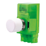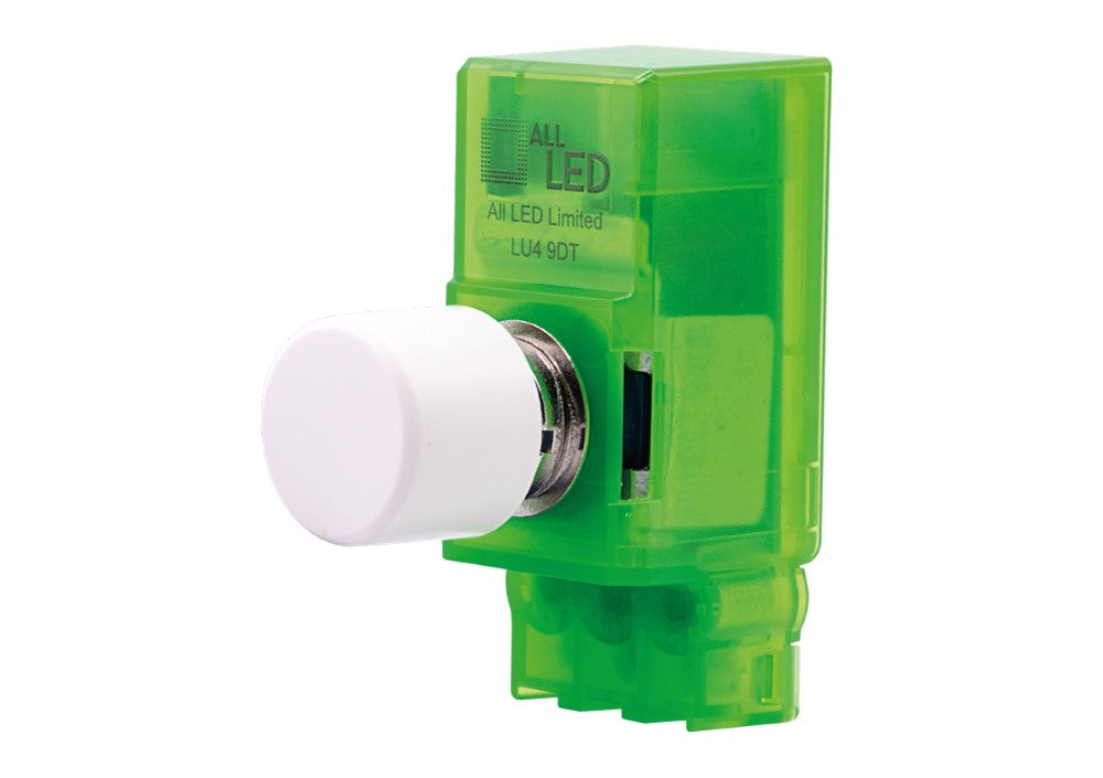 The All-Dim dimming module is a versatile solution for a wide range of dimming applications, offering programmable leading-edge and trailing-edge modes to suit different systems. It features an adjustable minimum brightness setting, allowing you to tailor the lighting ambiance to your preference. Equipped with advanced Optidim technology, it ensures smooth, flicker-free dimming for a premium experience. With broad compatibility, it supports various lighting fixtures and bulbs, making it highly adaptable. Its slim, slightly off-centre spindle design simplifies installation, whether for retrofits or new setups, while enlarged terminals make wiring effortless. Designed specifically for LEDs, the All-Dim module delivers reliable and efficient dimming control in a compact and user-friendly package.