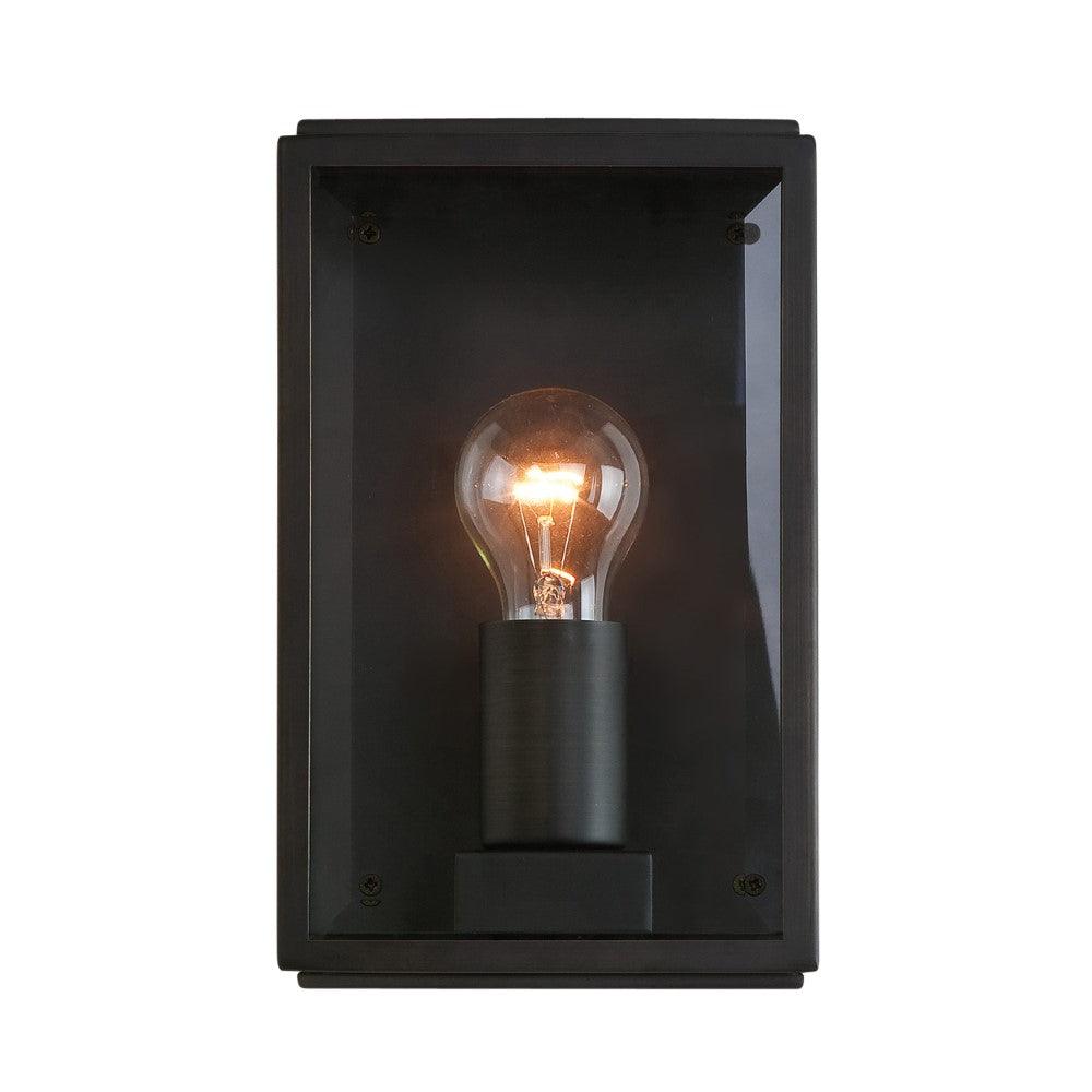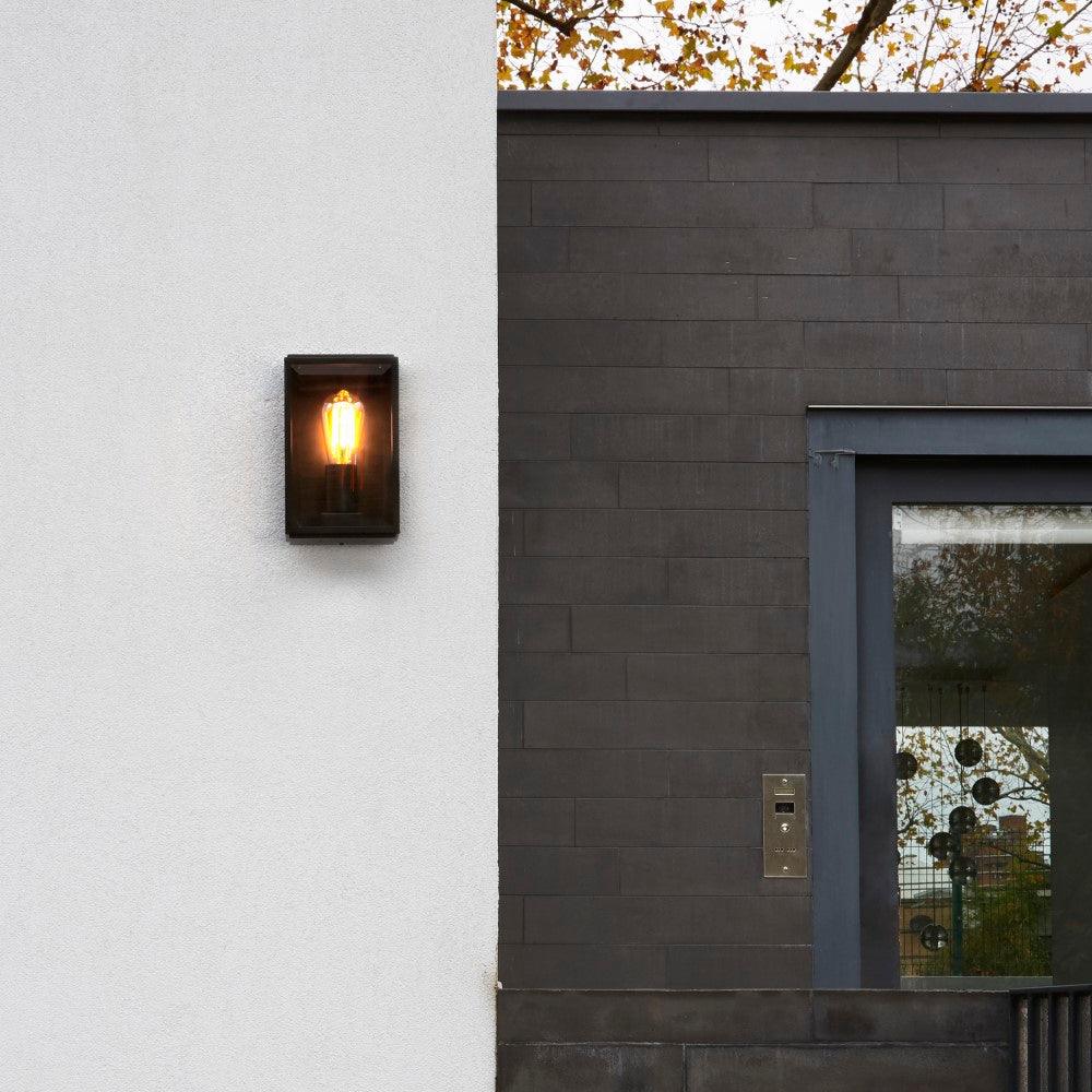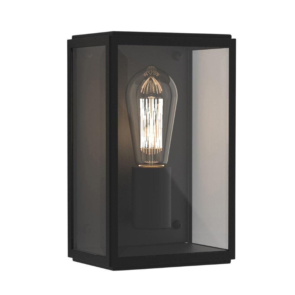 The Astro Homefield 160 Outdoor wall light finished in matt black provides a contemporary take on a traditional design. Made from steel, the clean lines of the Homefield will enhance any exterior wall. This compact wall light is suitable for illuminating exterior walls or creating a warm welcome when placed either side of a front door. Clear glass panels emit soft ambient light that can be dimmed when paired with a dimmable E27 bulb.