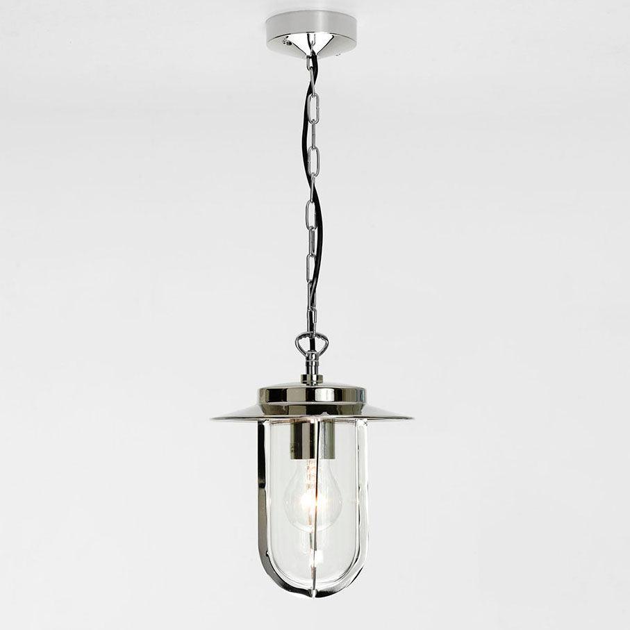 The Astro Montparnasse Outdoor pendant in polished nickel provides a contemporary take on a traditional design. Cast in zinc, the stylish and elegant Montparnasse will enhance any exterior space. This large pendant looks stylish under a porch to create a welcoming entrance. Ambient light is delivered through a clear glass diffuser and can be dimmed when paired with a dimmable E27 bulb.