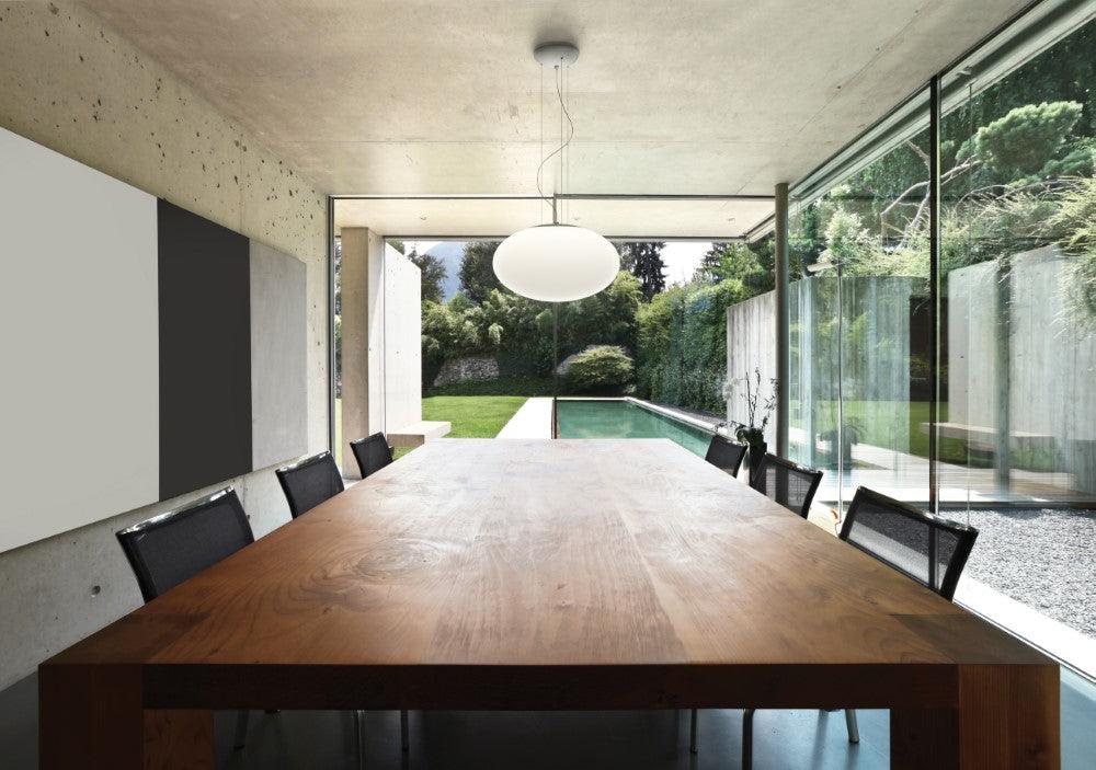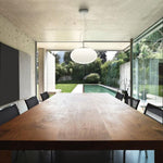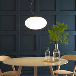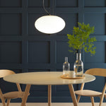 The Astro Zeppo Pendant 400 Indoor pendant finished in matt white features a contemporary design made from steel. This large pendant works as an impressive centrepiece to a dining table, or placed in any area around the home. Soft ambient light emits through the blown frosted opal glass diffuser and can be dimmed when paired with a dimmable E27 bulb.