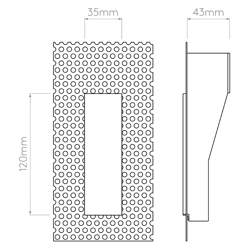 • The Borgo requires a 700mA constant current driver to operate and is dimmable depending on the chosen control gear. Consult with a qualified electrician before attempting installation. A cut-out of 170 x 40mm and recess depth of 43mm is required.