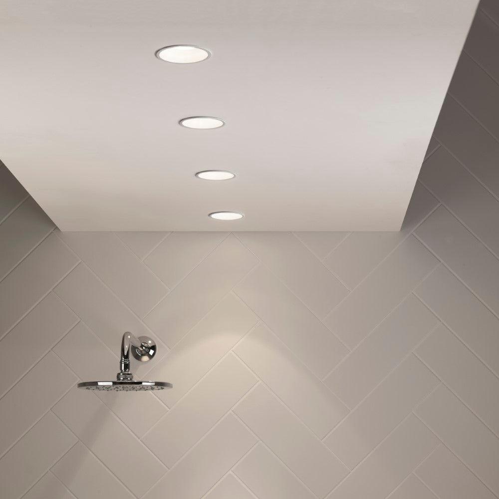 The Astro Minima Round Fixed IP65 Bathroom downlight finished in matt white features a simple and understated design made from aluminium. This GU10 downlight looks great in the bathroom, shower or wet room. Low glare light illuminates in a fixed downwards direction and can be dimmed when paired with a dimmable GU10 bulb. The Minima is designed for recessed ceiling mounting.