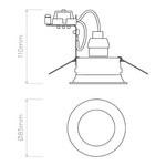 • The Minima require 1 x 6W Max LED GU10 bulb (maximum length of 80mm), which you will need to purchase separately. A cut-out diameter of 76mm / 3in and a recess depth of 150mm is required.