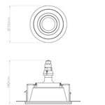 • The Blanco does not come with a bulb. You will require 1 x 6W Max LED GU10 MR16 shaped bulb. A cut-out diameter of 152mm / 6in and a recess depth of 150mm is required. The Blanco must be installed after plastering.