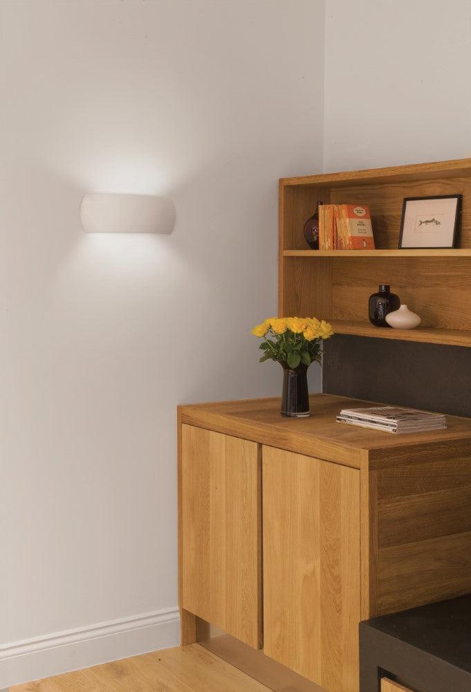 The Astro Milo Indoor wall light is made from ceramic and puts a contemporary twist to stylish design. The Milo can be painted to suit your interior decor. This compact wall light adds style to a dining room, hallway and any area around the home. Soft ambient lighting escapes from the top and bottom of the Milo to wash across walls, which can be dimmed when paired with a dimmable E27 bulb.