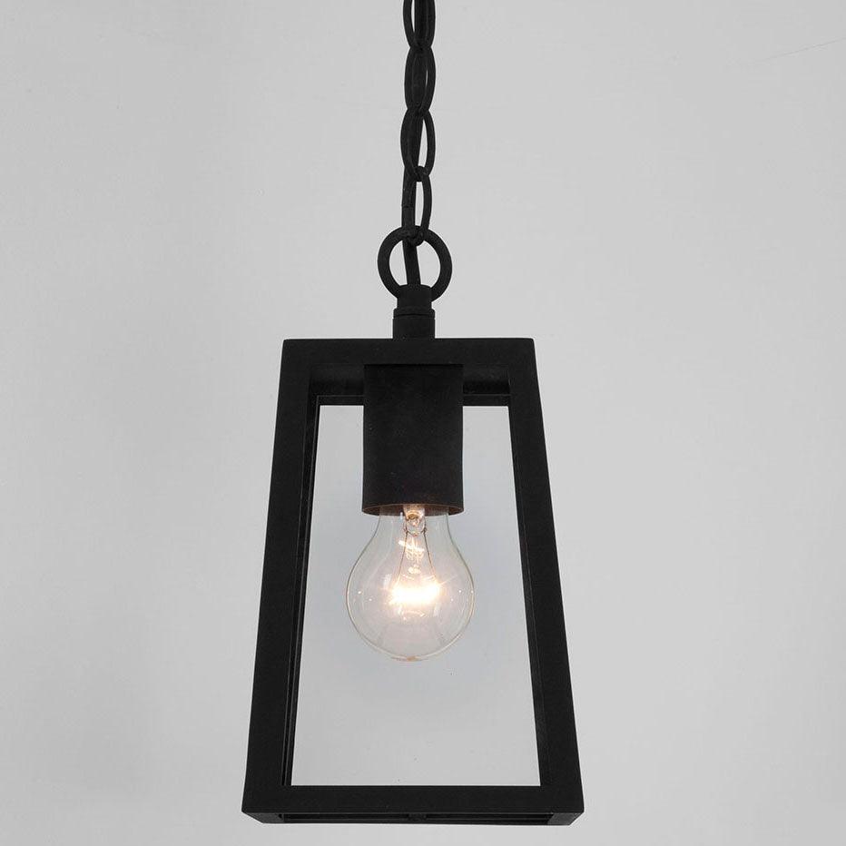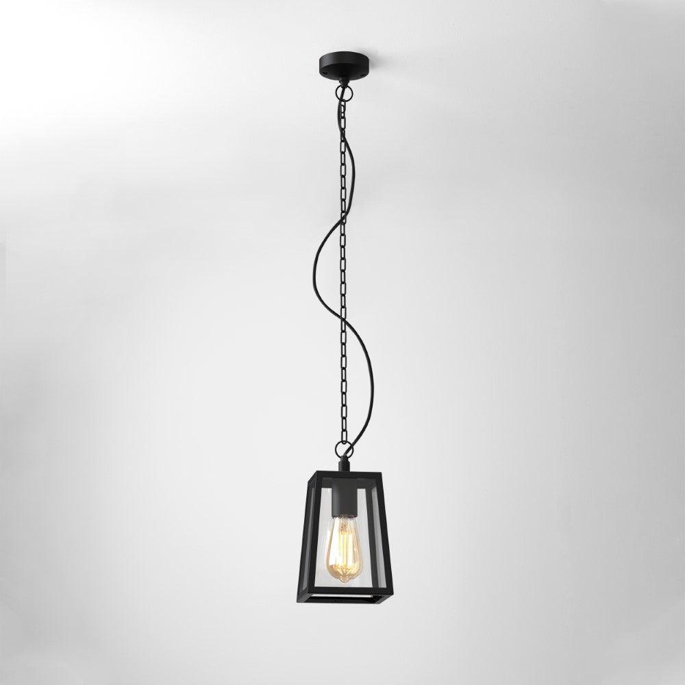 The Astro Calvi 215 Outdoor pendant finished in textured black is a modern take on a classic design and made from stainless steel. This compact pendant looks stylish under a porch to create a welcoming entrance. Ambient light is delivered through clear glass panels and can be dimmed when paired with a dimmable E27 bulb.