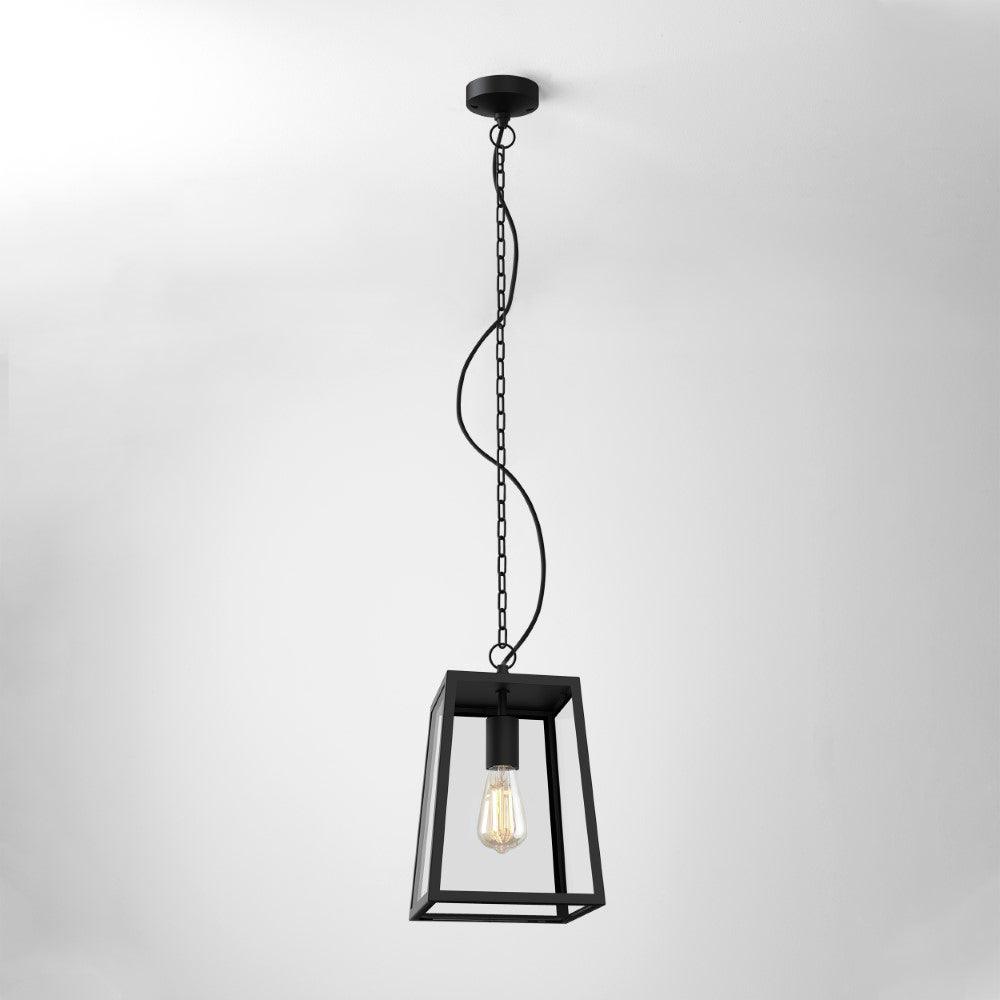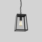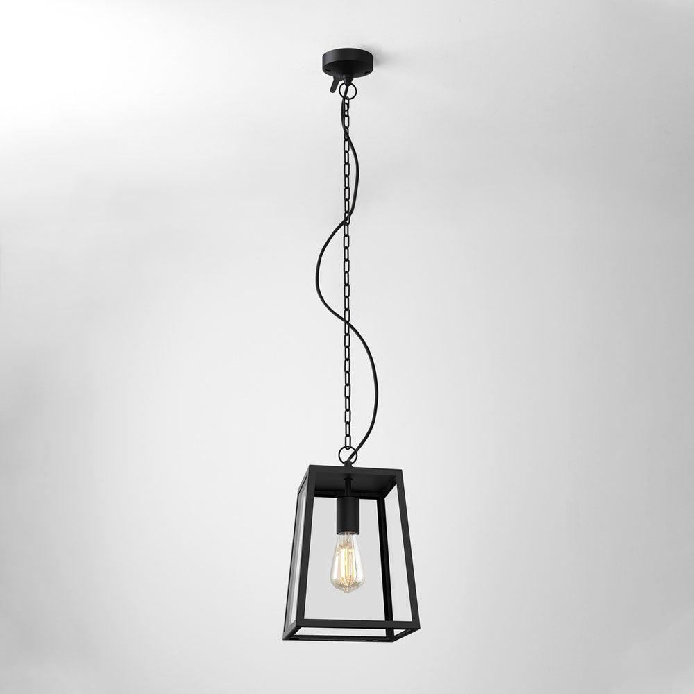 The Astro Calvi 305 Outdoor pendant finished in textured black is a modern take on a classic design and made from stainless steel. This large pendant looks stylish under a porch to create a welcoming entrance. Ambient light is delivered through clear glass panels and can be dimmed when paired with a dimmable E27 bulb.