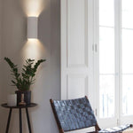 The Astro Kymi 300 Indoor wall light features a contemporary design made from plaster. This wall light adds elegance when lining a hallway or placed in any living area of the home. Soft ambient lighting escapes from the top and bottom to wash across walls, which can be dimmed when paired with a dimmable GU10 bulb.