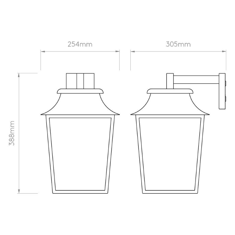 • An IP23 rating means the Richmond is protected from rain, making it suitable for safe installation in outdoor locations such as porches. This wall light is Class I, meaning it is earthed for your safety.