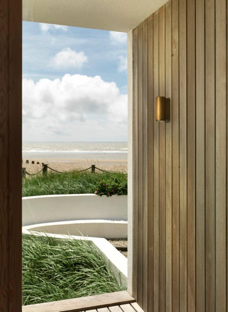 The Astro Jura Twin Coastal wall light is a contemporary design made from solid brass. This compact wall light works great on exterior walls, or next to a front door for an welcoming entrance. It provides a decorative lighting effect, and the light escapes in an up and down direction. Designed for wall mounting vertically.