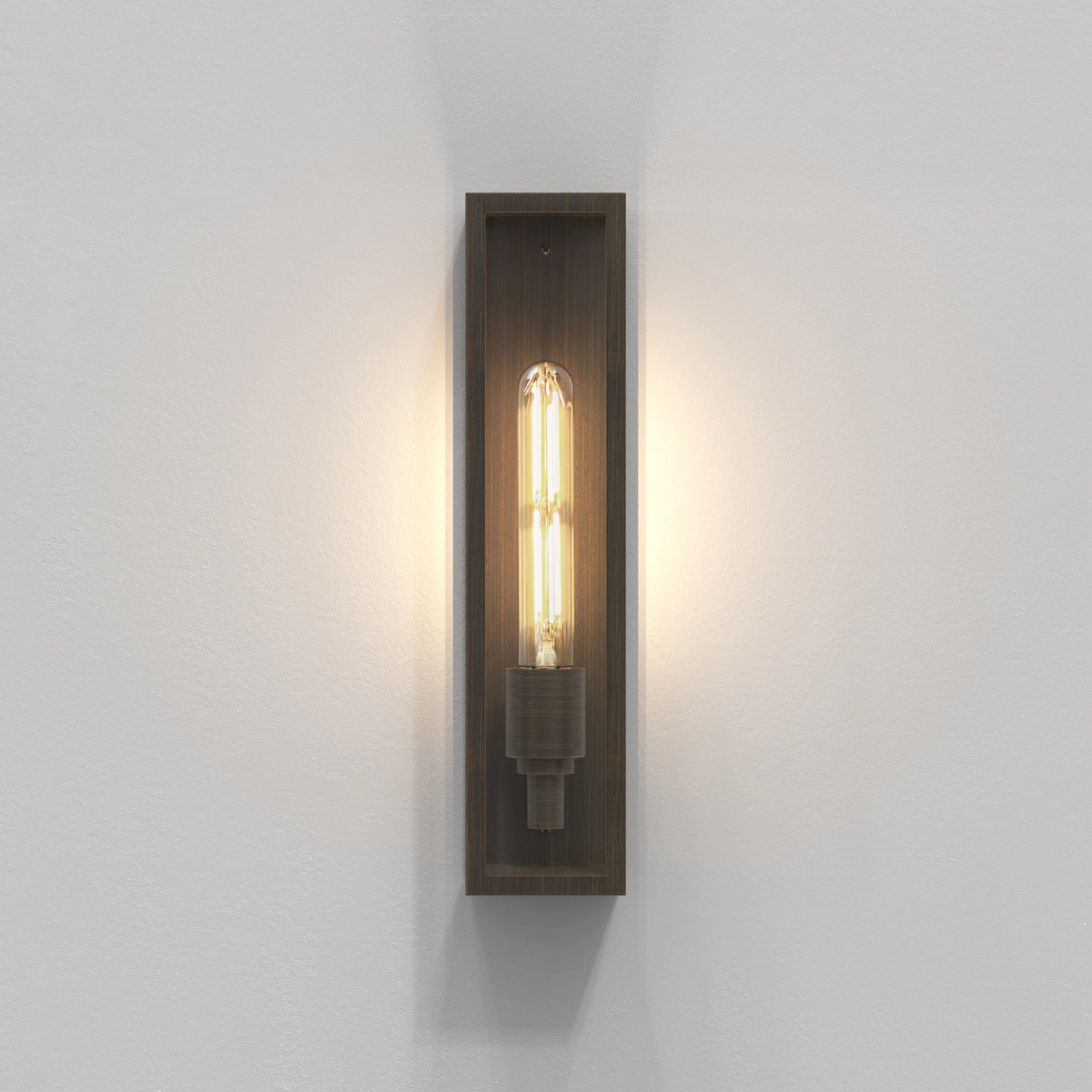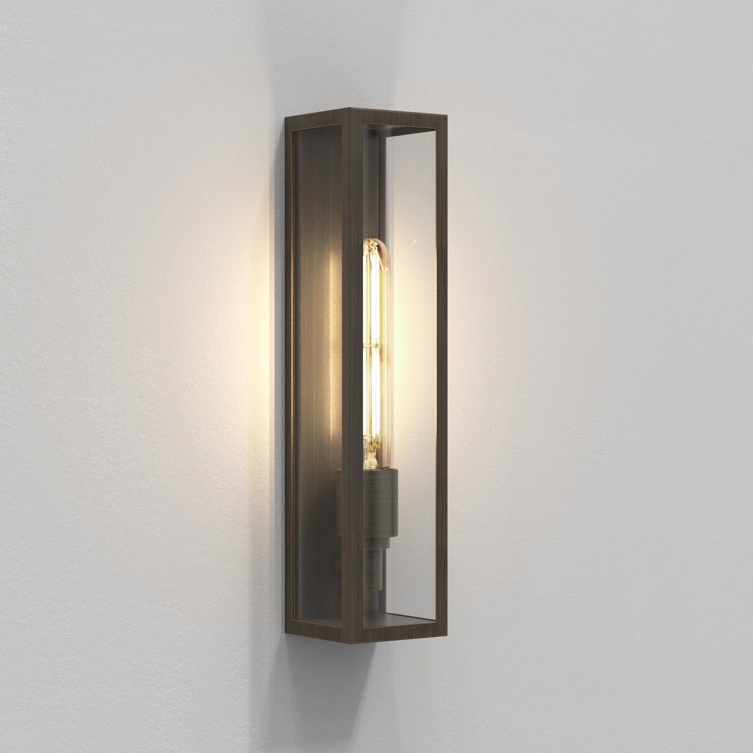 The Astro Harvard Outdoor wall light finished in bronze is a stylish and contemporary design made from stainless steel. This tall wall light is perfect for mounting either side of a front door for a welcoming entrance. Sparkling ambient light shines through clear glass panels, which can be dimmed when paired with a dimmable E27 bulb.