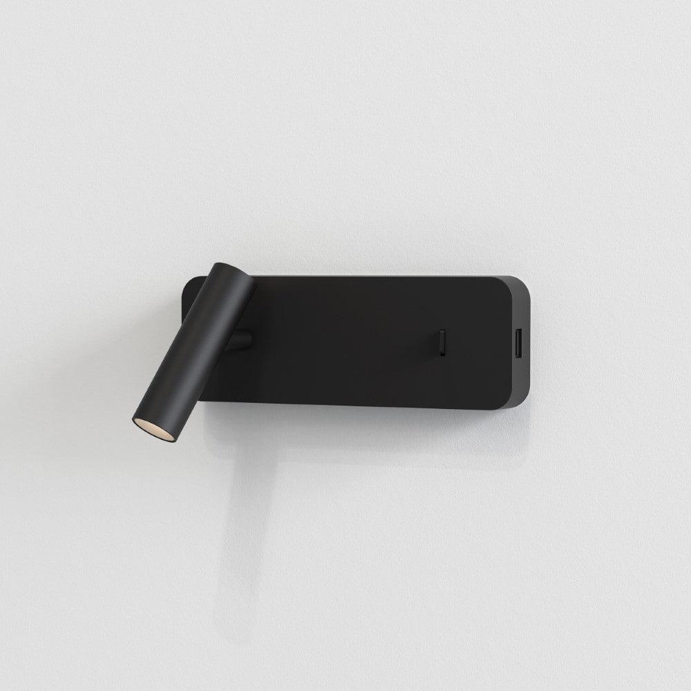 The Astro Enna Surface USB Reading Light in Matt Black is a contemporary design cast in zinc. Featuring a rocker switch for easy control and integrated LED light source for optimum efficiency and minimal maintenance. This compact reading light works great mounted either side of a bed. It provides directional low glare lighting with handy USB charging. Designed for wall mounting horizontally or vertically.