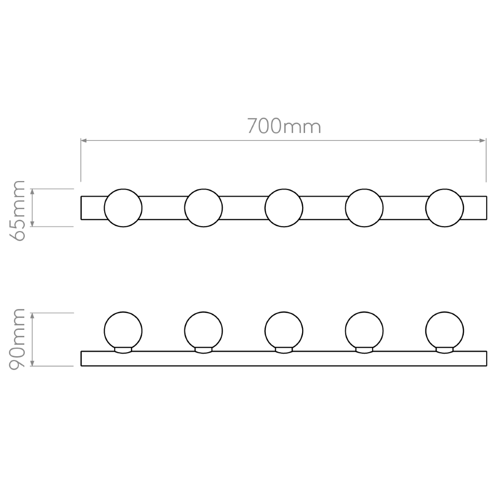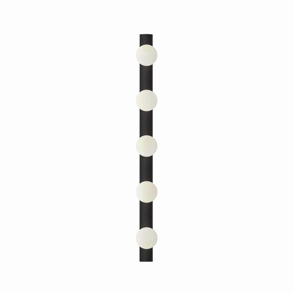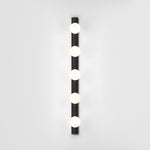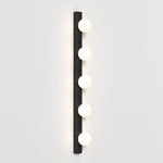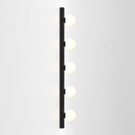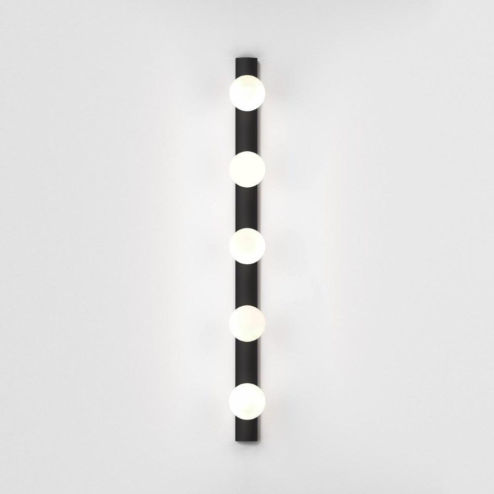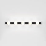 The Astro Cabaret 5 II bathroom wall light in matt black is a contemporary take on the classic Hollywood mirror made from steel. This timeless wall light works great in bathrooms or dressing rooms positioned both horizontally or vertically around a mirror. It provides bright, even illumination through blown glass globes. This light is dimmable when paired with a dimmable G9 bulb.