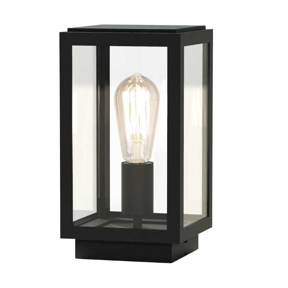 The Astro Homefield Outdoor Pedestal Light in Textured Black is a contemporary take on a traditional design. This compact pedestal light looks striking on top of gate posts or lining a path on top of bollards. It provides ambient light and is dimmable when paired with a dimmable E27 bulb. Designed for pedestal or post-top installation only.