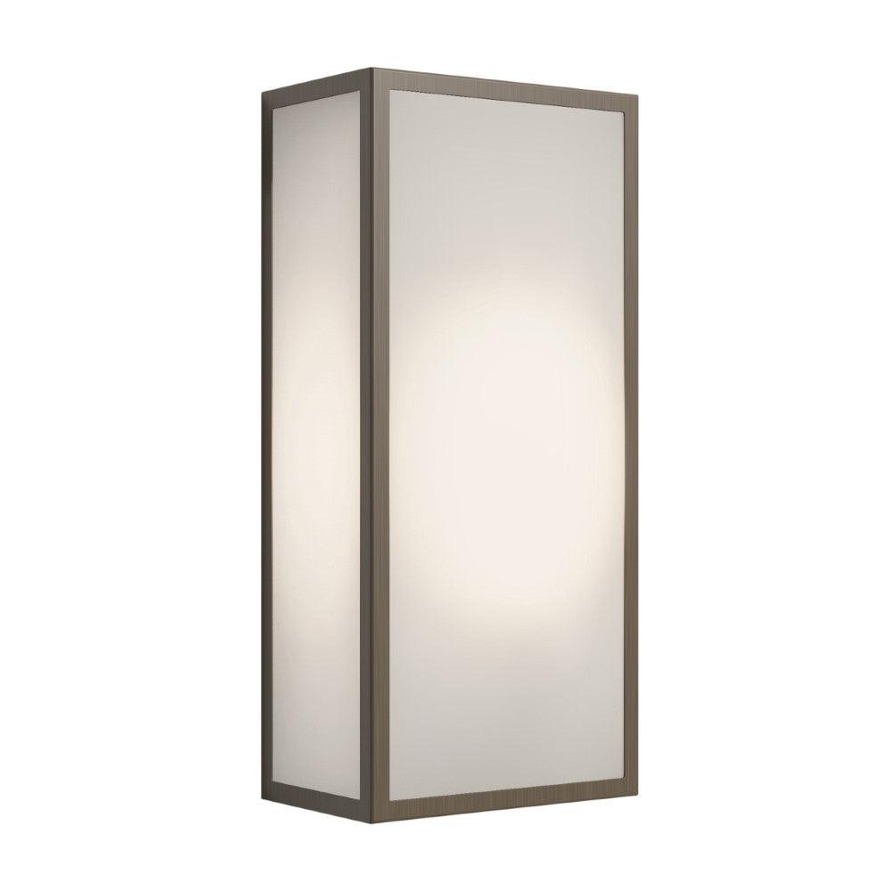 The Astro Messina 160 Frosted II Outdoor wall light finished in bronze provides a contemporary take on a traditional design. Made from steel, the clean lines of the Messina will enhance any exterior wall. This small wall light is effective at illuminating outdoor spaces or creating a warm welcome if placed either side of a front door. The Messina emits soft ambient light through each clear glass panel and is dimmable when paired with a dimmable bulb.