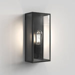 The Astro Messina 160 II Outdoor wall light finished in textured black provides a contemporary take on a traditional design. Made from steel, the clean lines of the Messina will enhance any exterior wall. This small wall light is effective at illuminating outdoor spaces or creating a warm welcome if placed either side of a front door. The Messina emits soft ambient light through each clear glass panel and is dimmable when paired with a dimmable bulb.