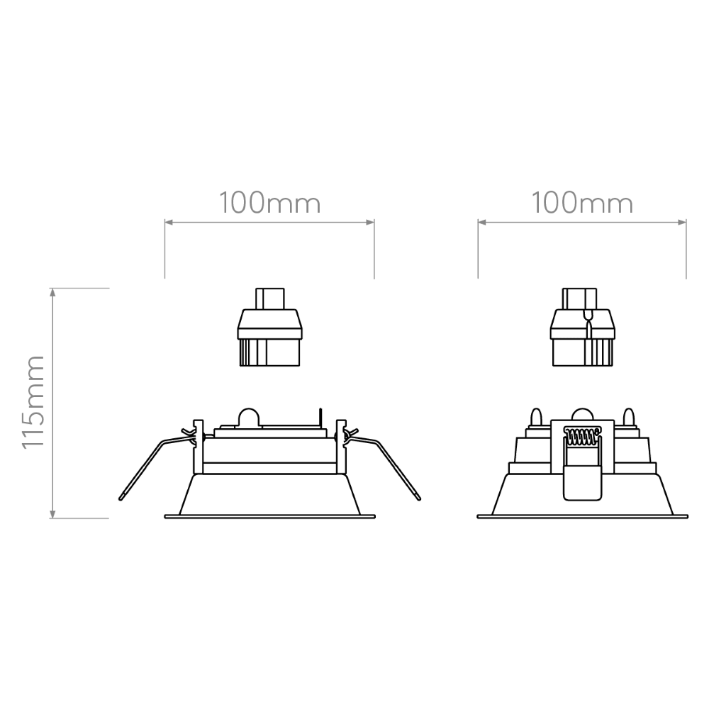 • The Minima does not come with a bulb. You will require 1 x 6W Max LED GU10 bulb, with a maximum length of 73mm. A 86 x 86mm cut-out, and a recess depth of 150mm is required.
