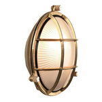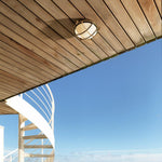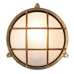 The Astro Thurso Round wall light finished in coastal natural brass is a modern take on a traditional bulkhead design and is made from solid brass for use in challenging coastal applications. This wall light looks stylish in any outdoor setting on a wall or ceiling. Soft ambient light spreads through a frosted glass diffuser, which can be dimmed when paired with a dimmable bulb. Thurso is designed for installation on a wall or ceiling.