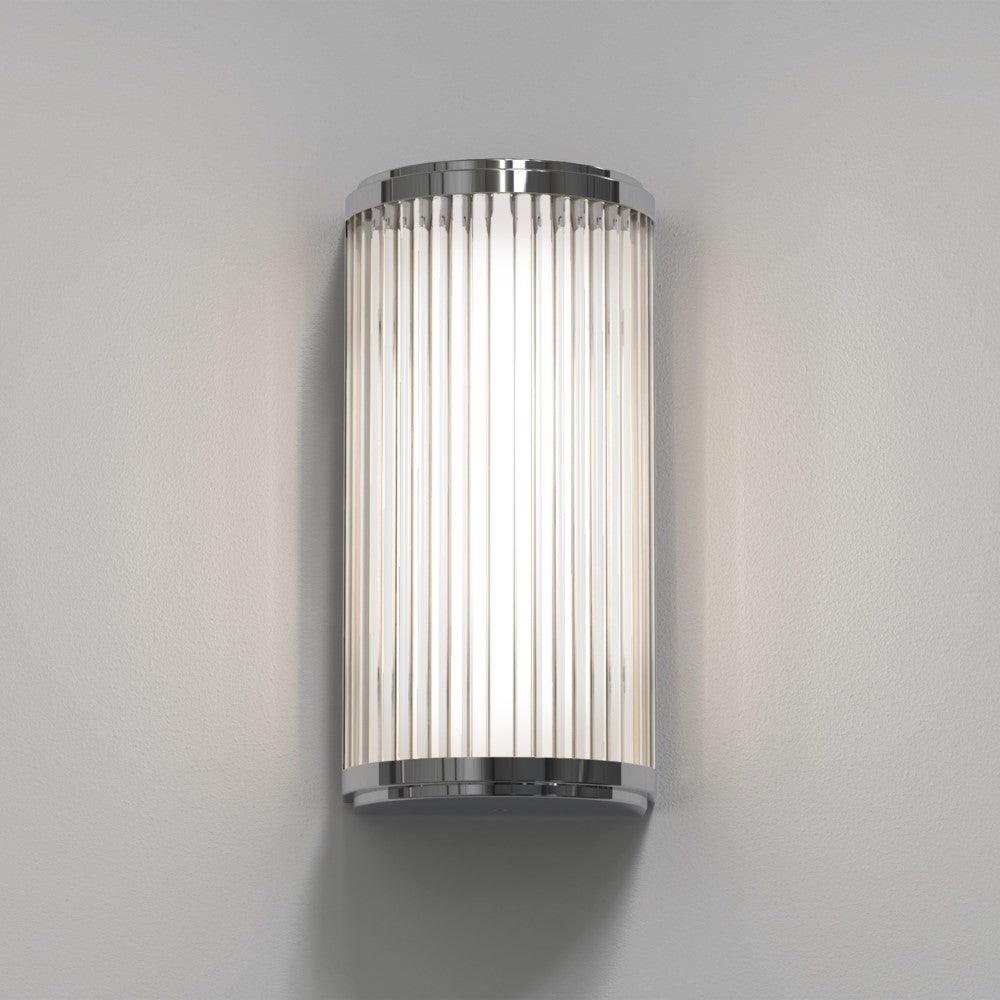 The Astro Versailles 250 Phase Dimmable bathroom wall light in polished chrome is a modern take on a classic 1930s inspired design. Featuring integrated LED's for optimum efficiency and compatible with standard household dimmer switches. Intended primarily for bathrooms, but the streamlined design of the Versailles complements any space. Made from individual glass rods with metal end caps, it provides functional, glare-free task lighting that exudes vintage glamour.