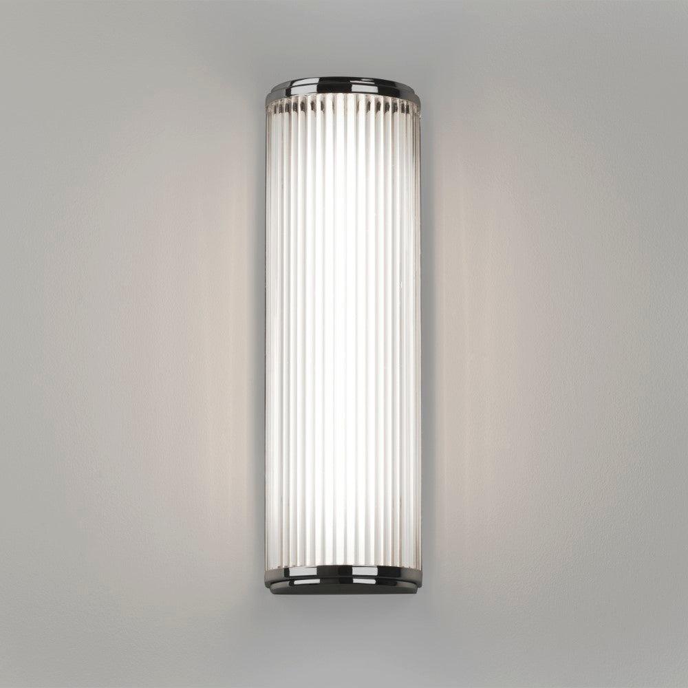 The Astro Versailles 400 Phase Dimmable bathroom wall light in polished chrome is a modern take on a classic 1930s inspired design. Featuring integrated LED's for optimum efficiency and compatible with standard household dimmer switches. Intended primarily for bathrooms, but the streamlined design of the Versailles complements any space. Made from individual glass rods with metal end caps, it provides functional, glare-free task lighting that exudes vintage glamour.
