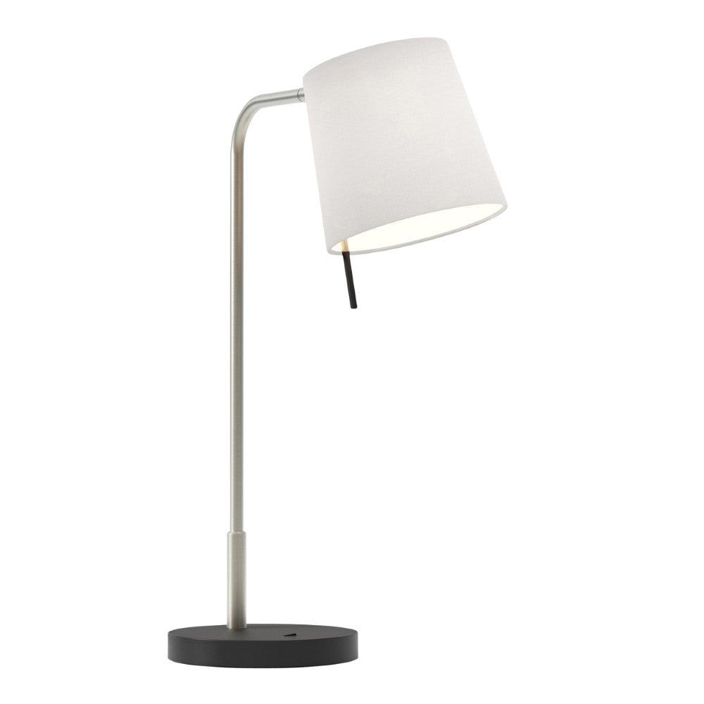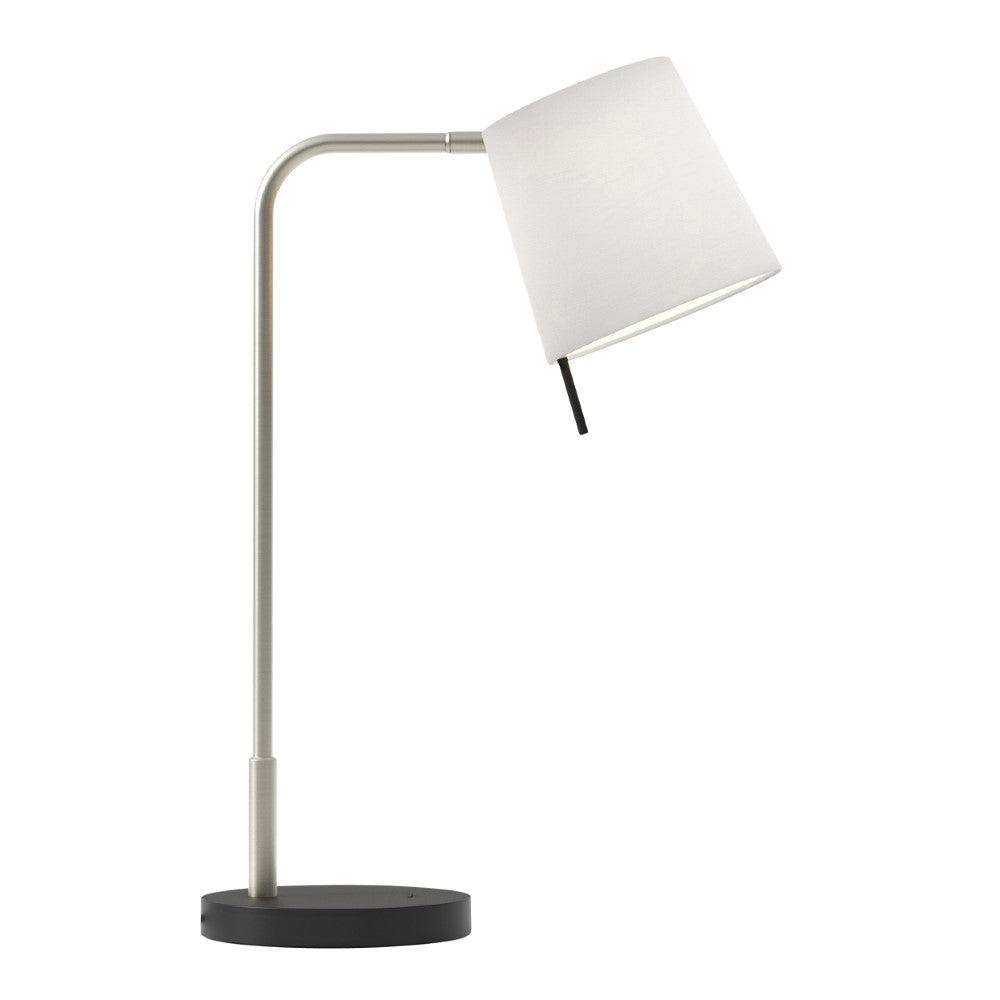 The Astro Mitsu Indoor Table Light in Matt Nickel is a contemporary design made from mild steel and featuring a convenient rocker switch in the base. To complete the look you will need an Astro Cone 173 shade which is sold separately. This relatively large table light works great as a desk light or by a bedside for reading. It provides directional task lighting. With both tilt and rotation adjustment in the head, this can be aimed for functionality and comfort in use.