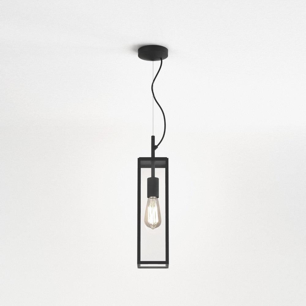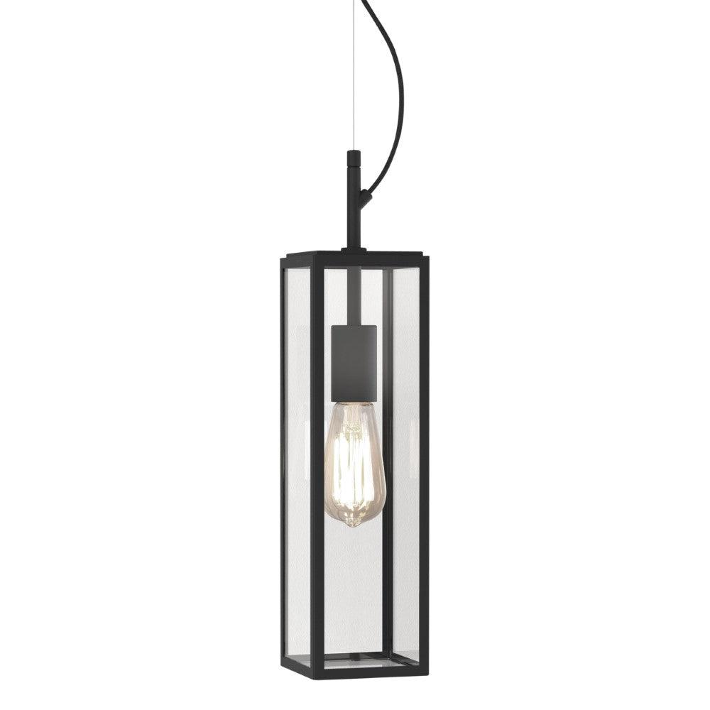 The Astro Harvard Pendant outdoor in textured black is a modern interpretation of the traditional lantern design in a crisp, slimline box shape. Made from stainless steel, the Harvard has an adjustable pendant drop of 1800mm. This slimline pendant brings sophistication to an outdoor porch complementing any style of architecture. The Harvard provides ambient light that escapes through clear glass panels in all directions. This light is dimmable when paired with a dimmable bulb.