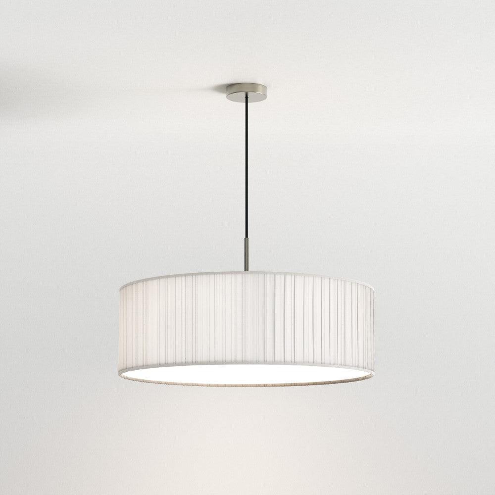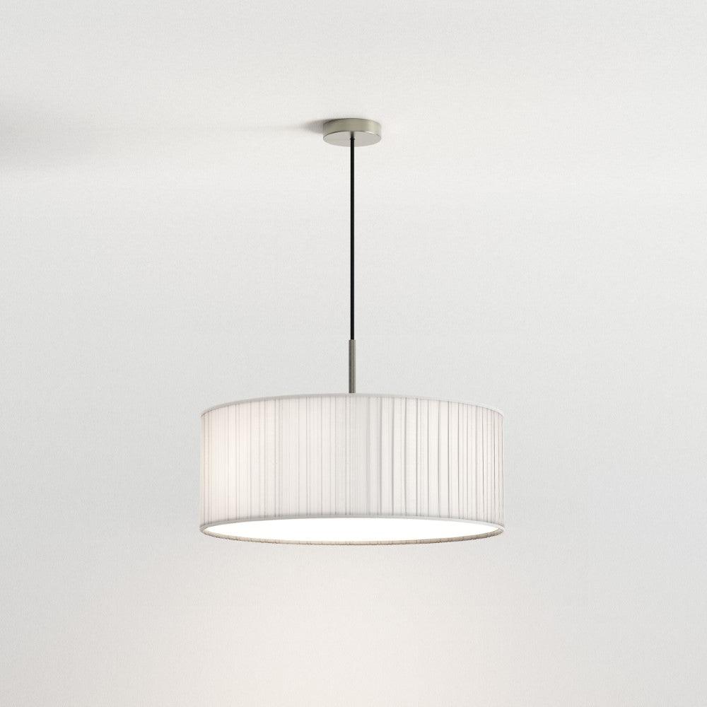 The Astro Cambria Pendant indoor in matt nickel is the ultimate solution for modern, understated lighting schemes. Made from steel with a braided fabric cable, the Cambria has an adjustable pendant drop of 2000mm. Fine details elevate the Cambria above other drum pendants making it perfect for areas that require functional yet soothing overhead lighting, such as dining rooms. This light is dimmable when paired with a dimmable E27/ES bulb.