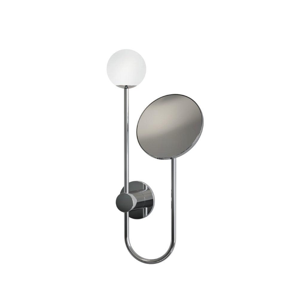 Inspired by the mechanical perfection of an orrery, the Astro Orb bathroom mirror in polished chrome is a spherical ball of illumination, with a fully adjustable mirror that 'orbits' around the luminaire at its centre Primarily designed to be positioned alongside a bathroom mirror, the Orb is an illuminated 5x magnifying mirror unlike any other, providing useful task lighting.