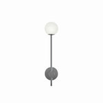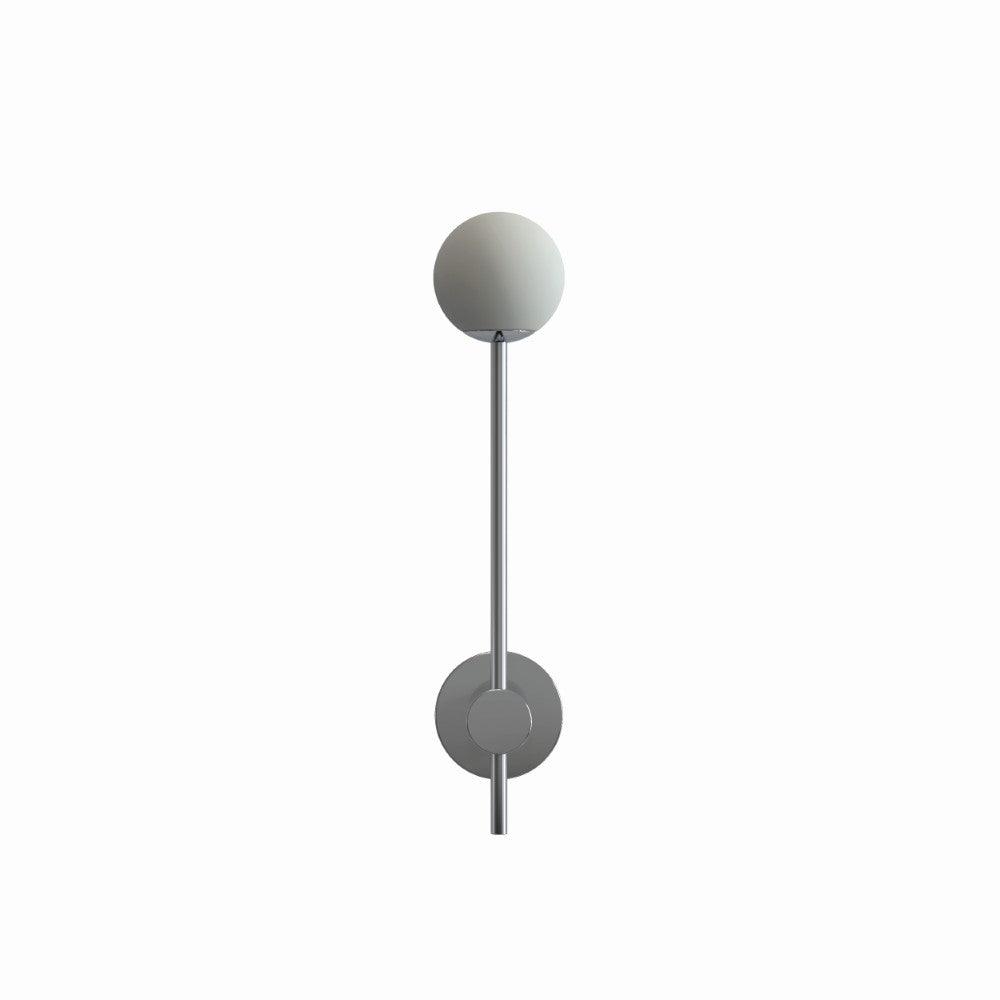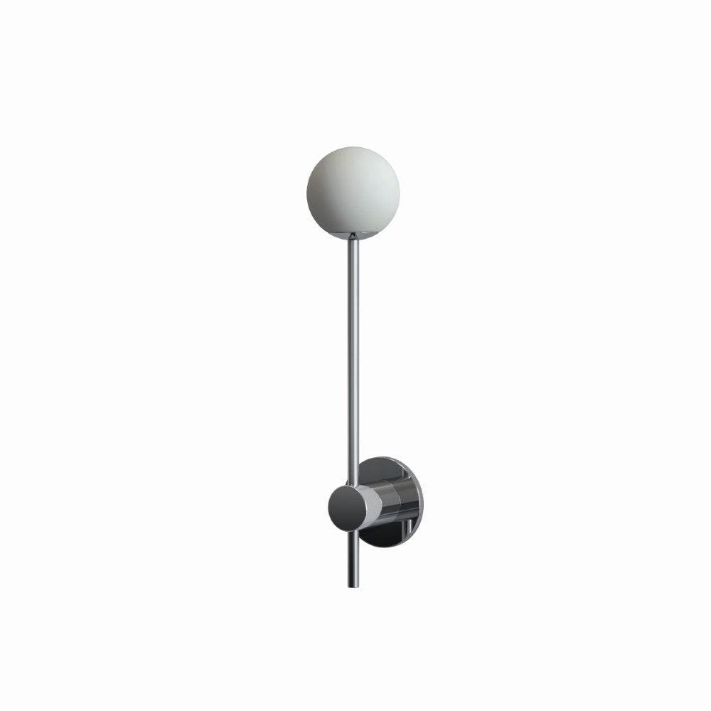 The Astro Orb Single in polished chrome is a elegant, contemporary bathroom wall light made from aluminium. This striking wall light is perfect for use either side of a bathroom mirror for a dramatic look. The Orb casts diffused ambient light through a frosted glass shade and is dimmable when paired with a dimmable G9 bulb.