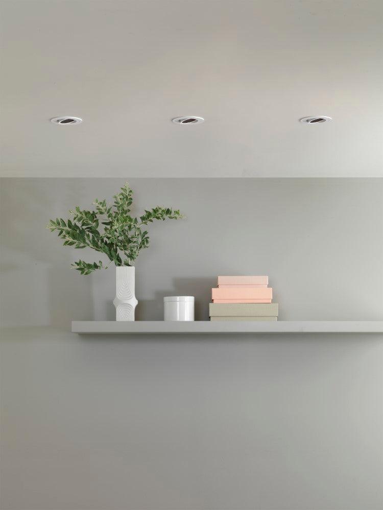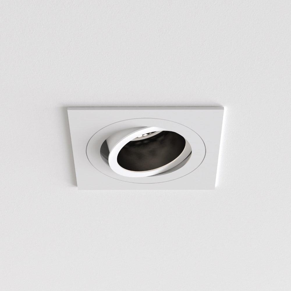 The Astro Pinhole Slimline Square Adjustable Fire-Rated Indoor downlight in Matt White is a contemporary design made from mild steel. The Pinhole looks great in all indoor spaces and is dimmable when paired with a dimmable GU10 bulb. Designed for recessed ceiling mounting. With 25° tilt and 360° rotation, it can be directed where required.