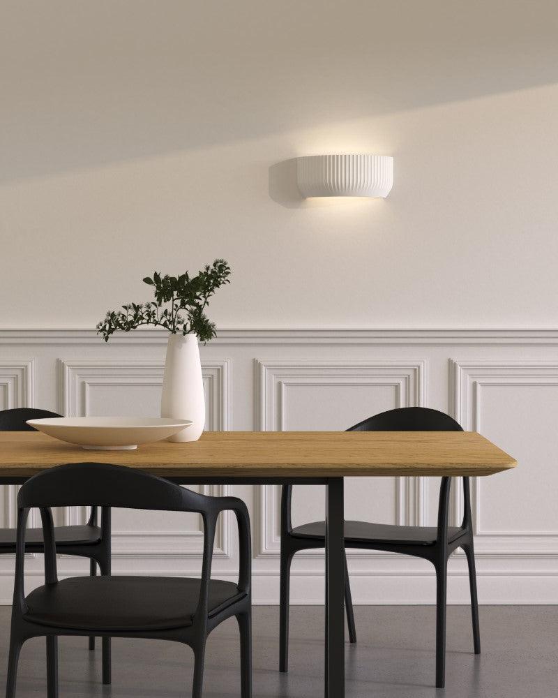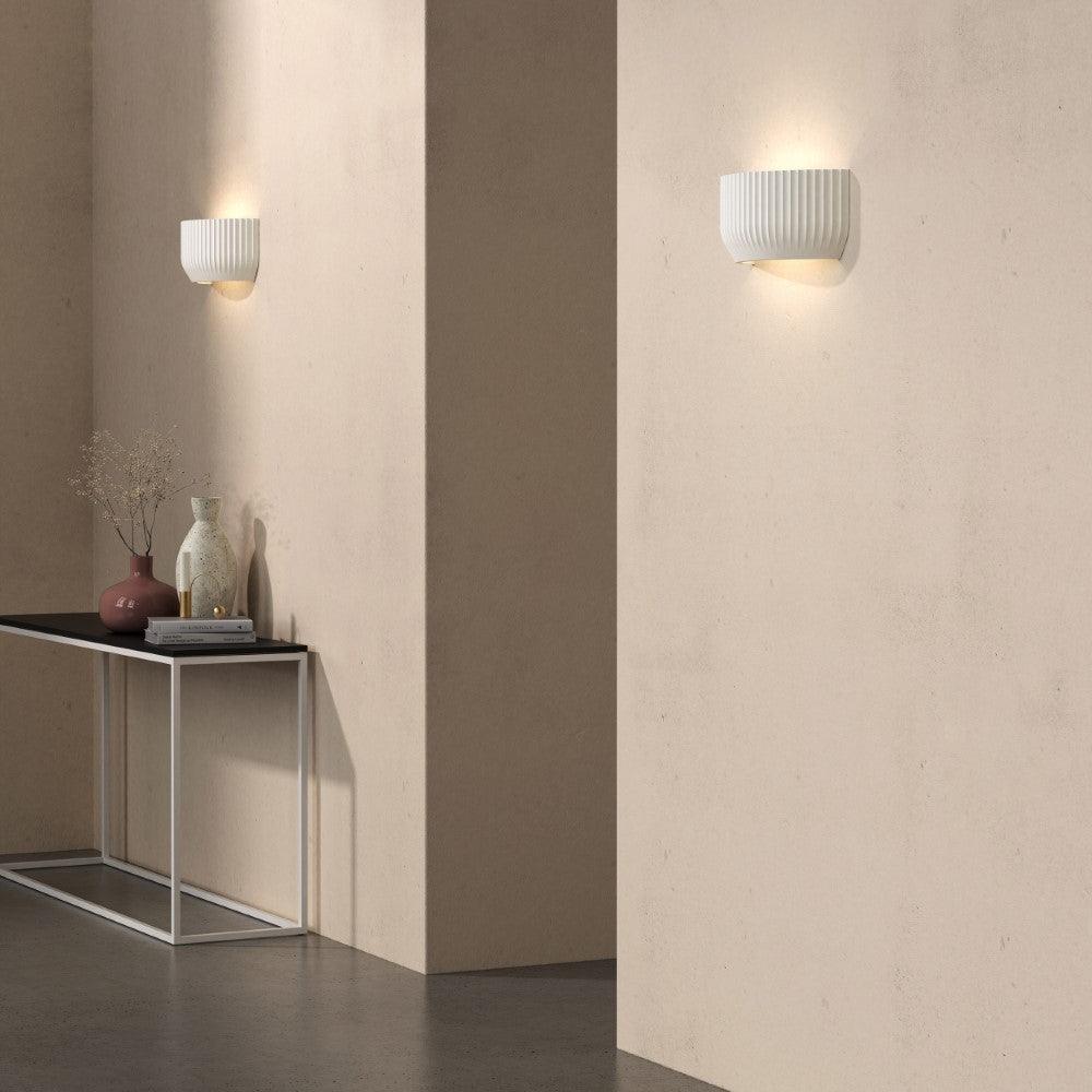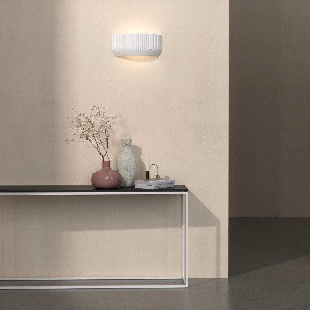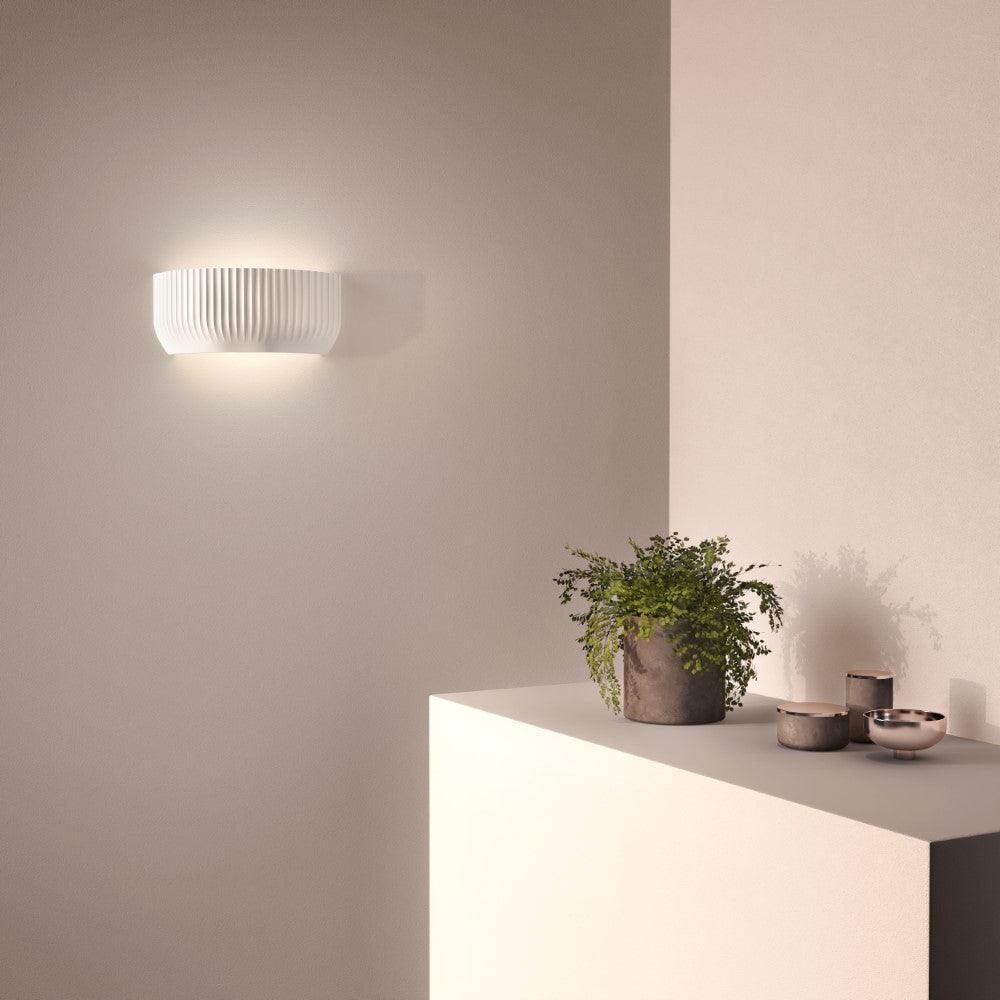 The Astro Blend Indoor Wall Light is a contemporary design made from plaster. The name derived from the delicate fluted detail at the top which blends away into the soft curve at the bottom. The Blend looks great in any living area: hallways, living rooms, bedrooms etc. It provides a soft, comfortable glow up and down the wall. The Blend is dimmable when paired with a dimmable E27 bulb. Designed for wall mounting horizontally.