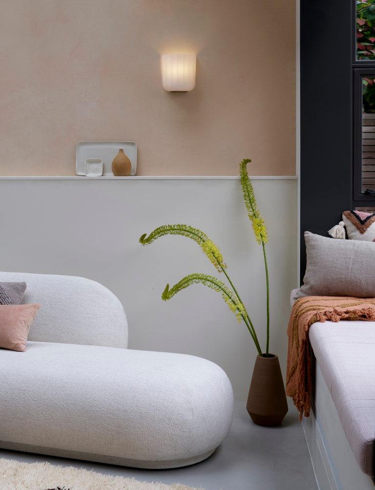 Inspired by the fluted columns of classic Greek architecture, Veo adds timeless elegance and a warm, ambient glow to your home. With its decorative glass shade and sleek metal base, it is an attractive addition to any modern living room or hallway.