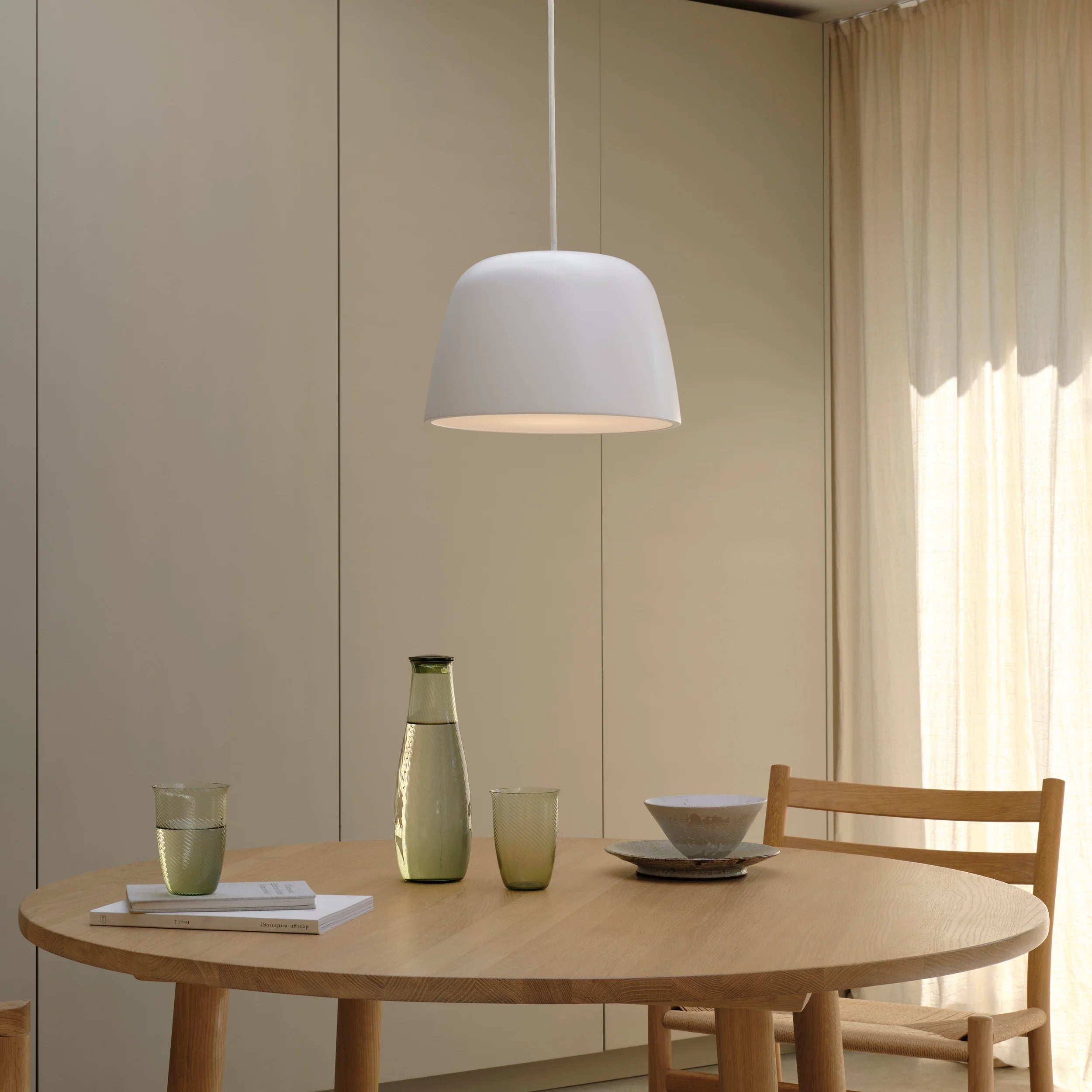 Available in a contemporary Matt Black or Matt White finish, Taiko Pendant is an interior pendant, suited to kitchens and breakfast bars. The spun metal shade features a superellipse shape that has been softened to create an adaptable appearance. It delivers evenly diffused light to provide a blend of soothing and functional illumination.