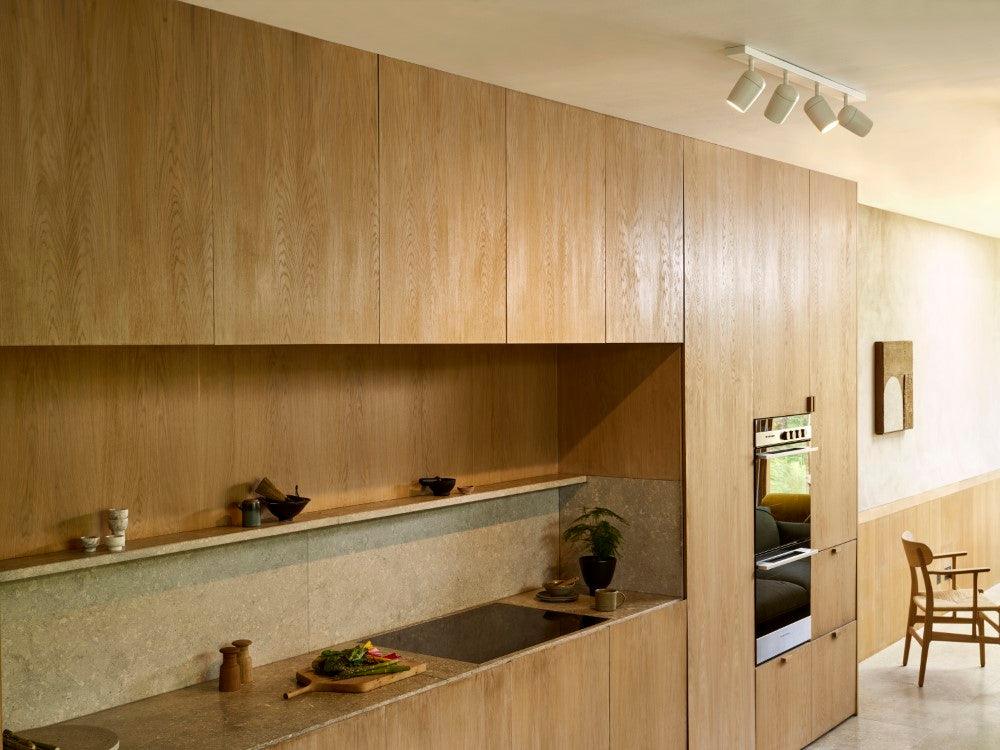 With its four curved spotlight heads arranged along a straight bar, Koto is the perfect choice for adding functional, multidirectional spotlighting to your home. Thanks to its versatile design, Koto's four spotlights can be adjusted individually to focus the light output as desired, making it an ideal lighting solution for kitchens, workspaces, living rooms and beyond.