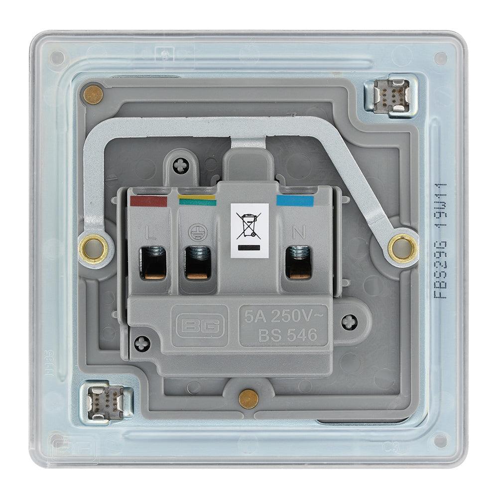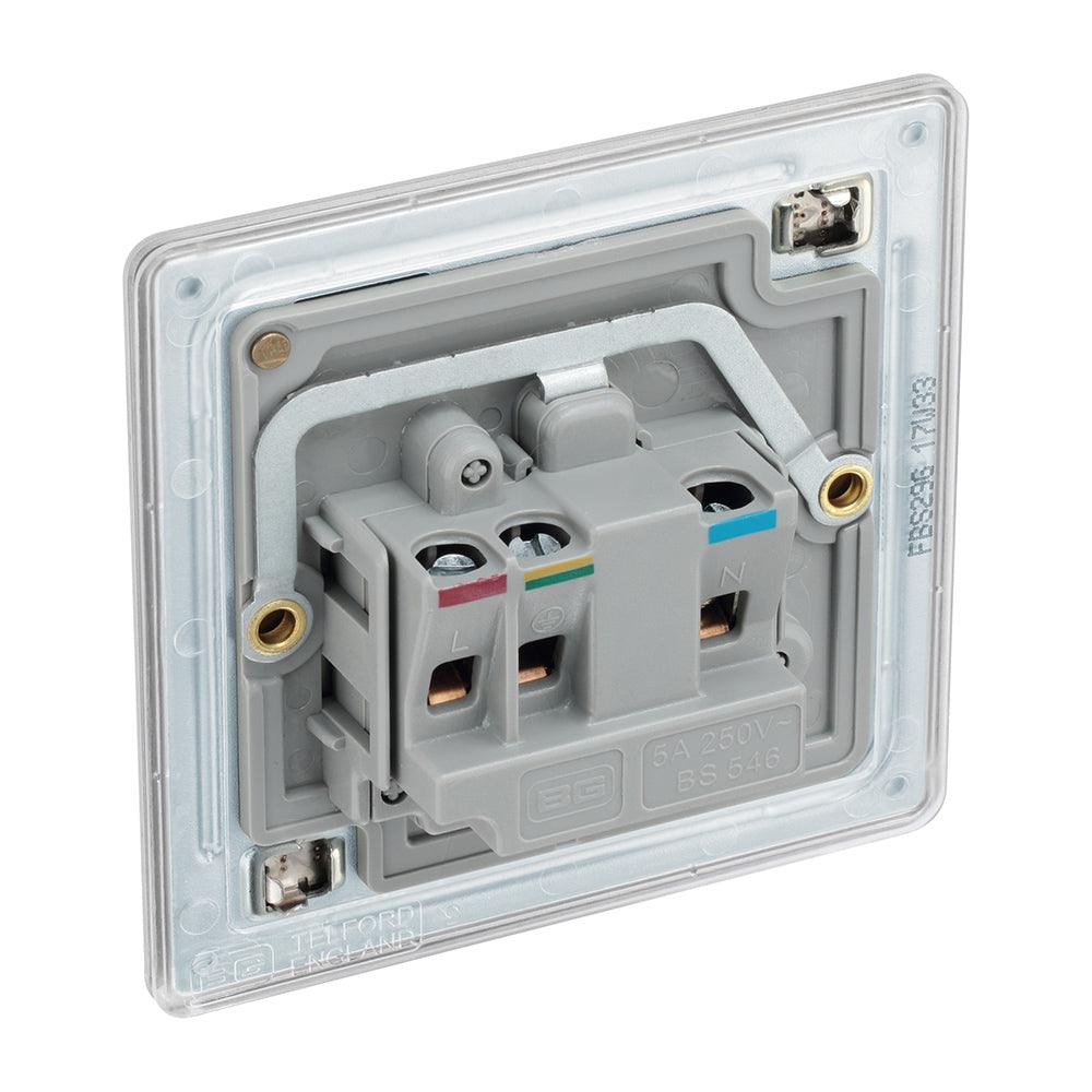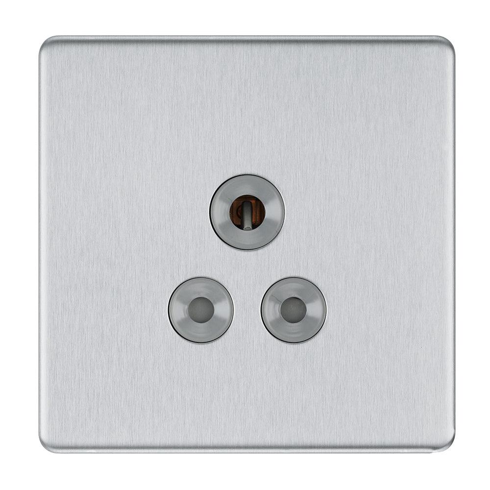 BG FBS29G Screwless Flat Plate Stainless Steel Single Round Pin Unswitched 5A Socket