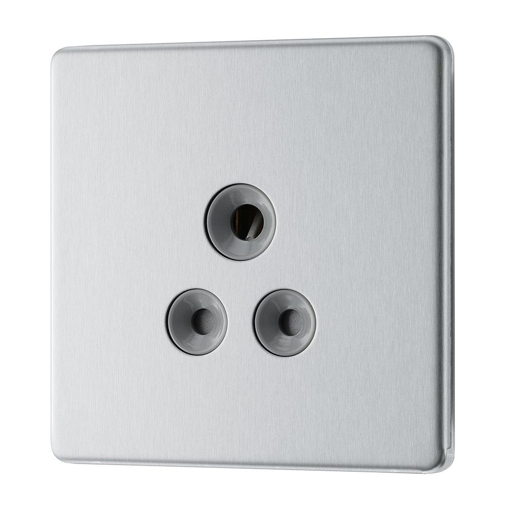 The BG FBS29G is a Single Round Pin Unswitched 5A Socket made from high quality components, in a sleek and stylish brushed steel finish.