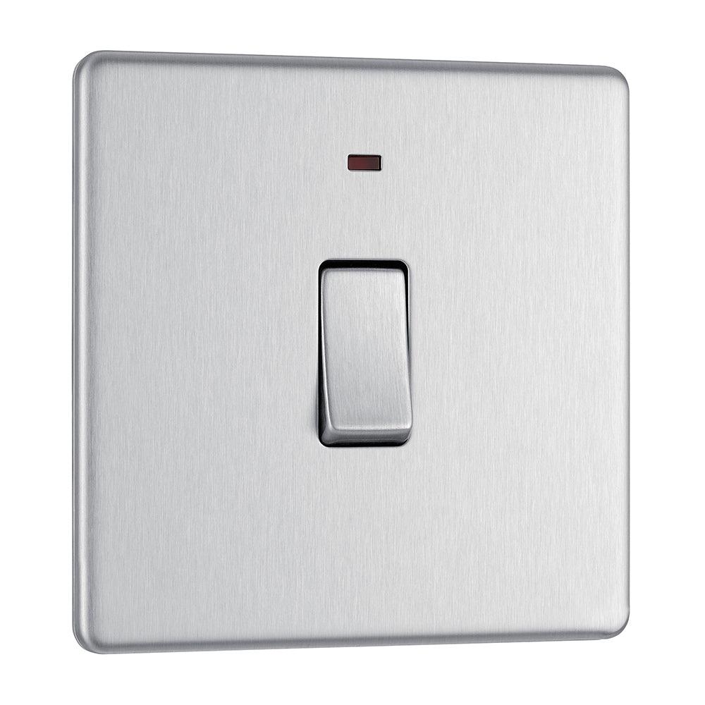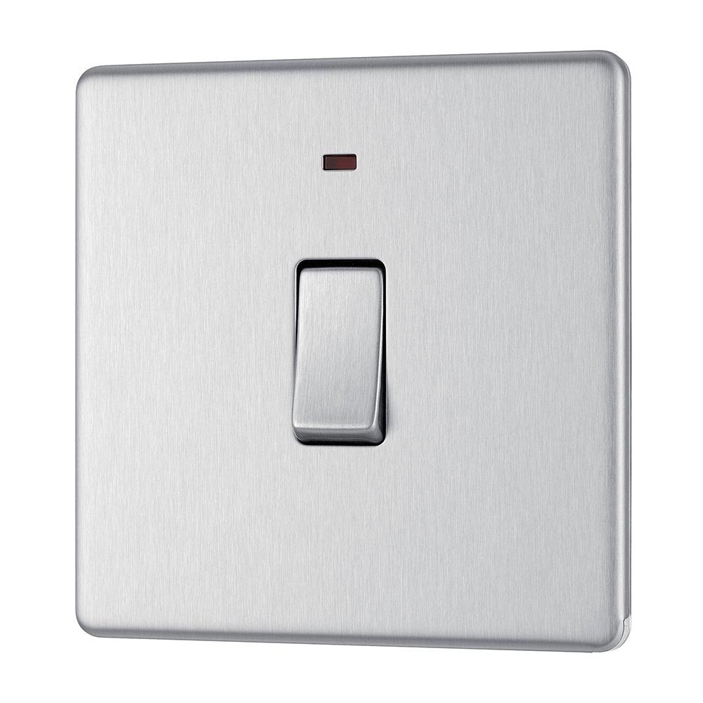 The BG FBS31 is a 20A Single Switch with Neon made from high quality components, in a sleek and stylish brushed steel finish.