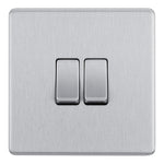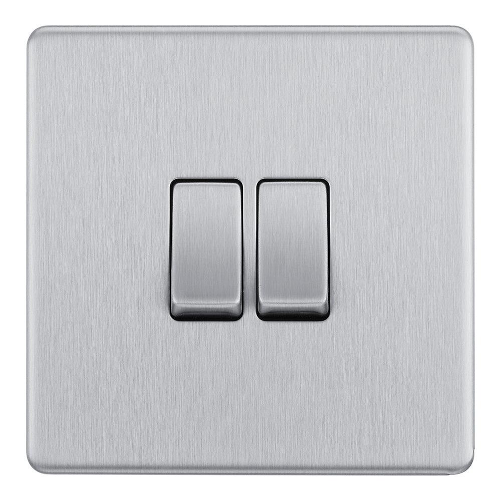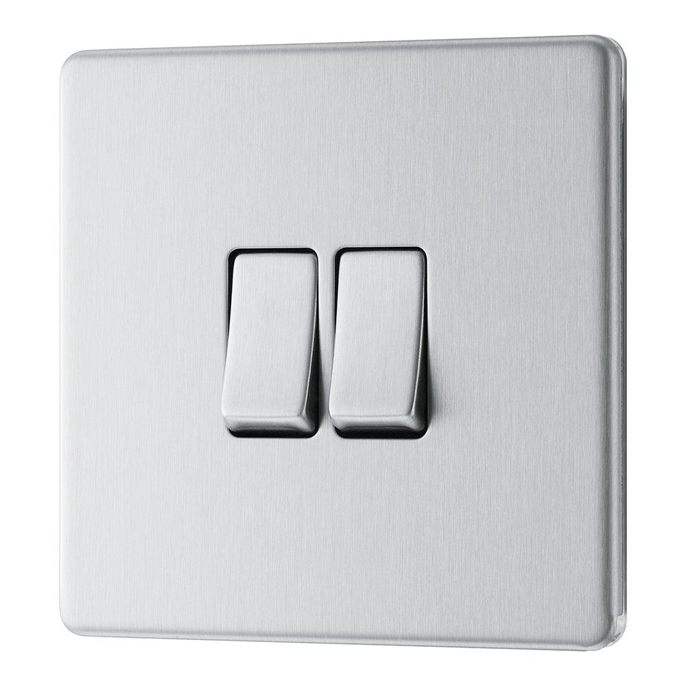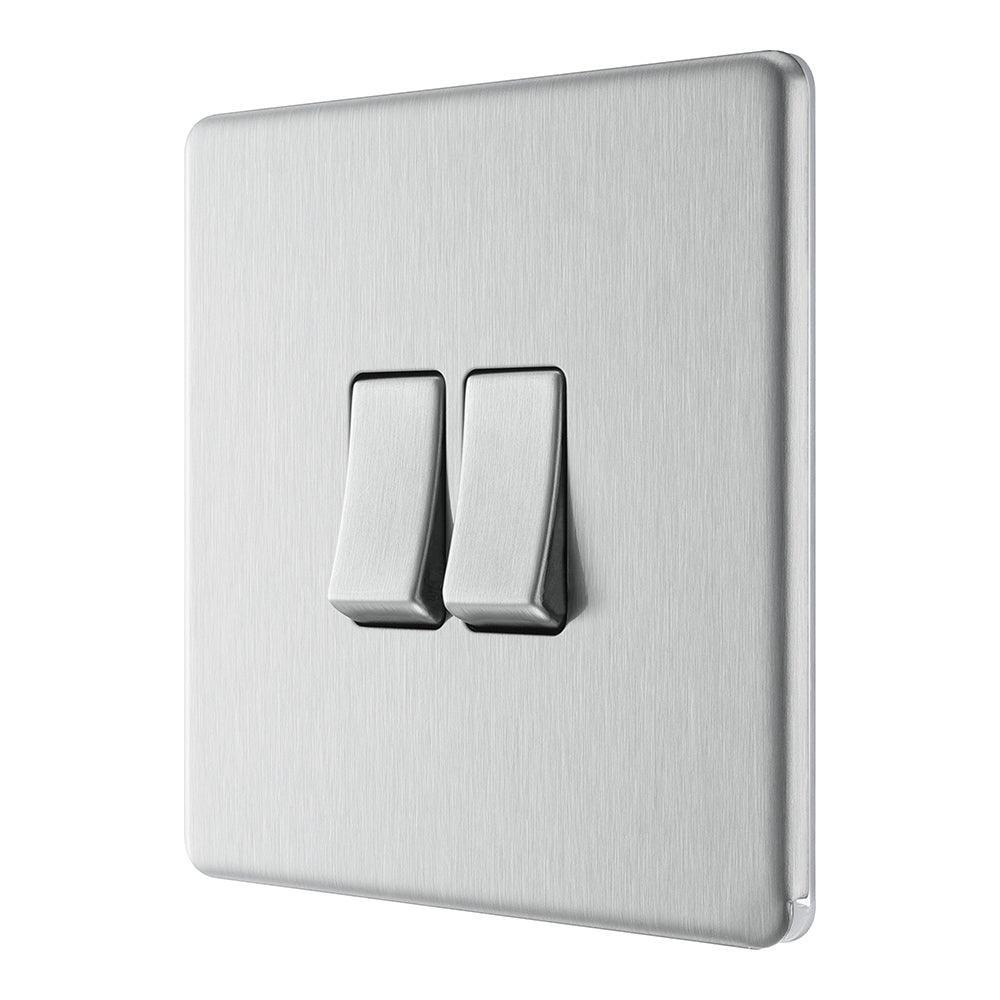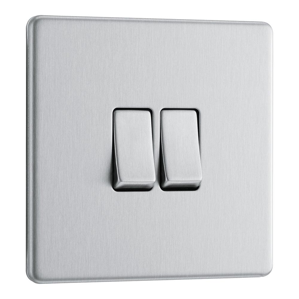 The BG FBS42 is a 2 Gang Light Switch made from high quality components, in a sleek and stylish brushed steel finish.