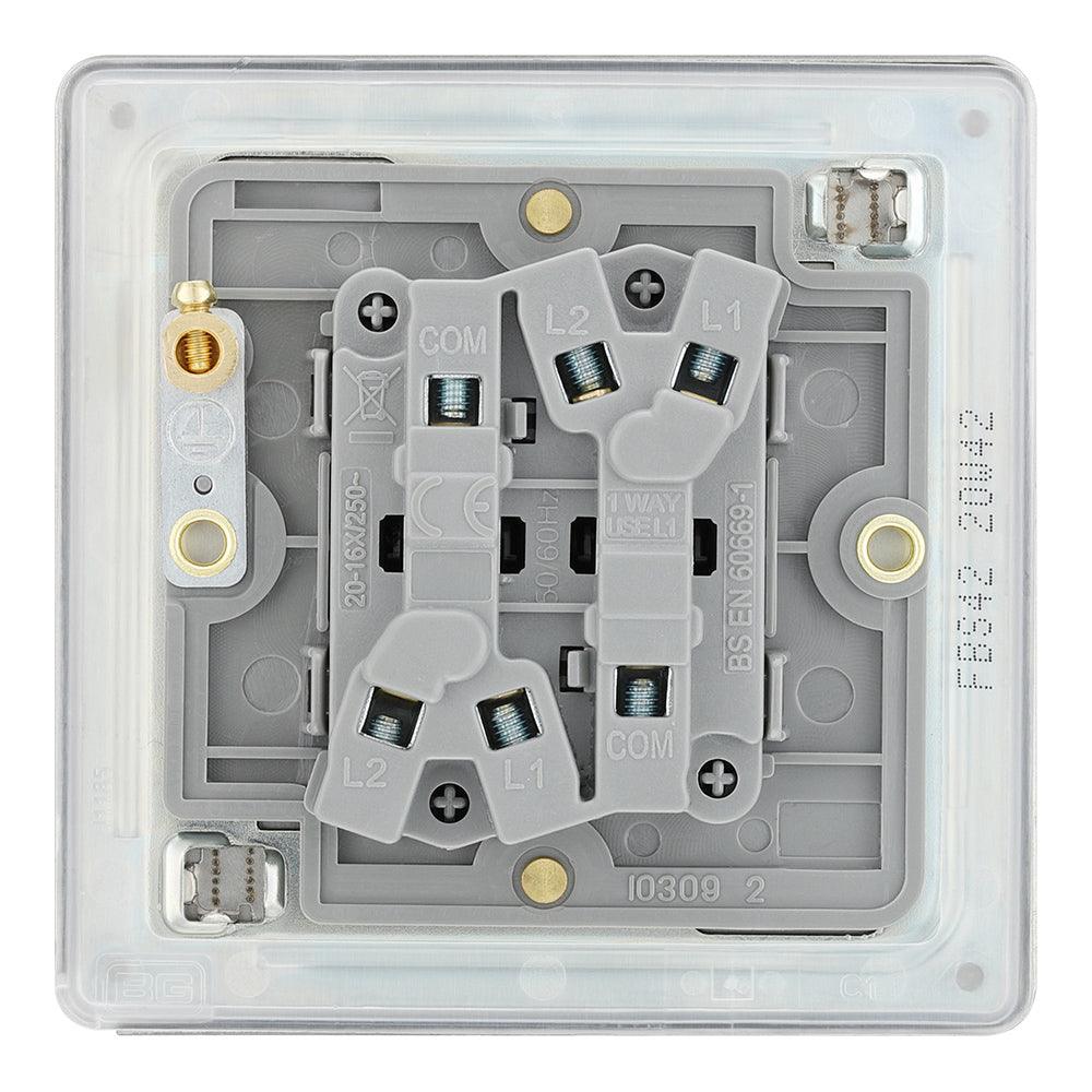 BG FBS42 Screwless Flat Plate Stainless Steel Double Switch 10A 2 Way