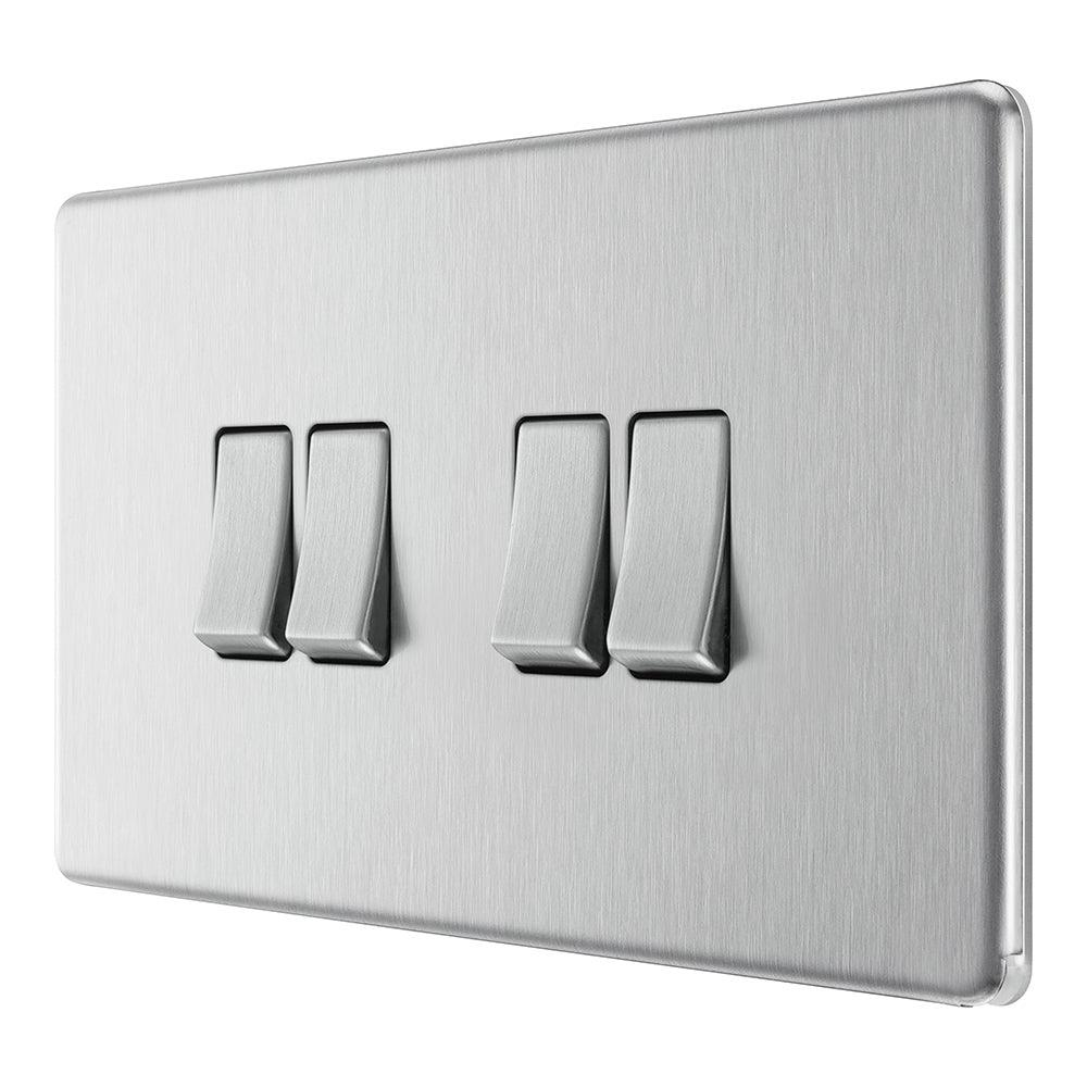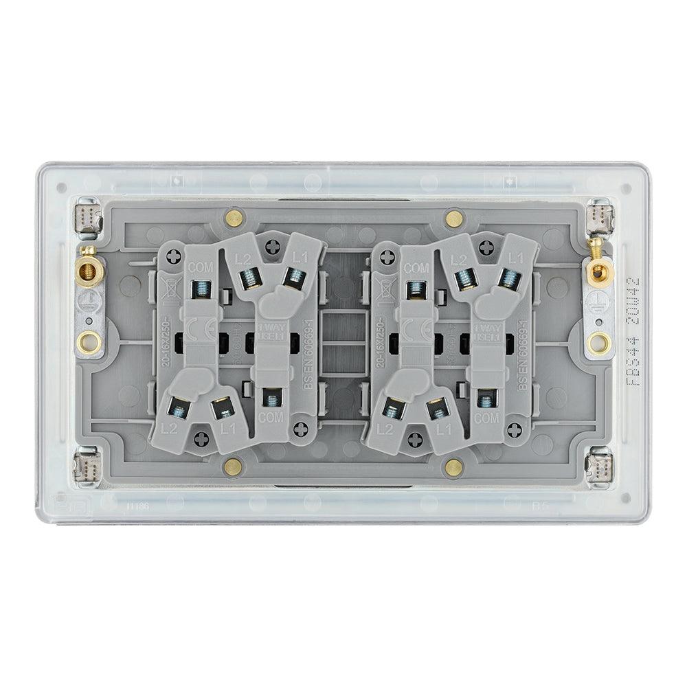 BG FBS44 Screwless Flat Plate Stainless Steel Quadruple Switch 10A 2 Way