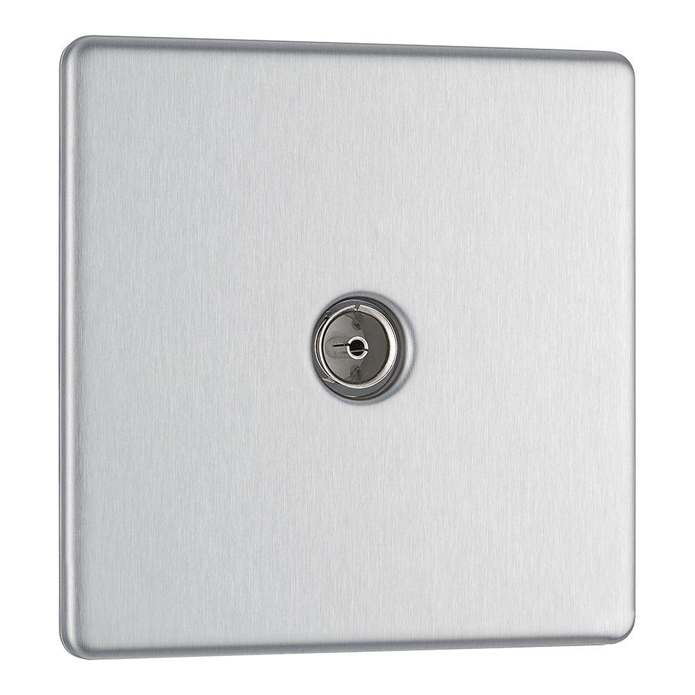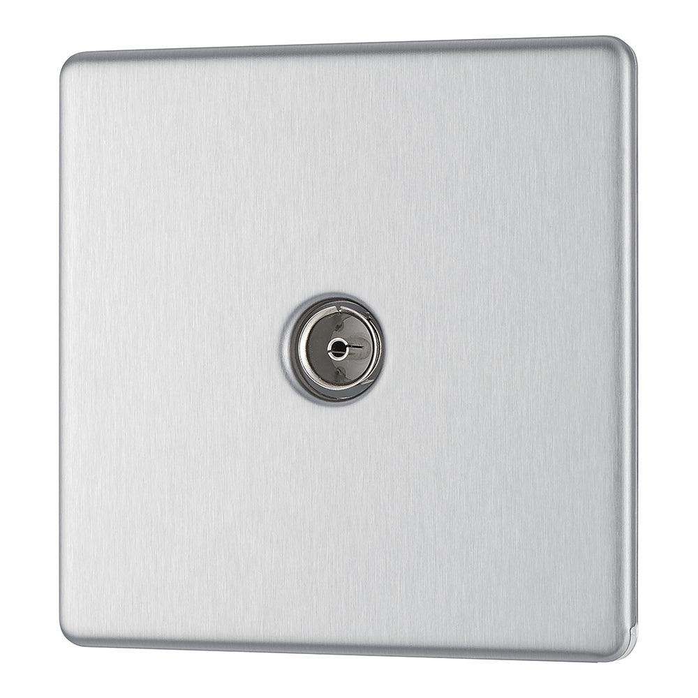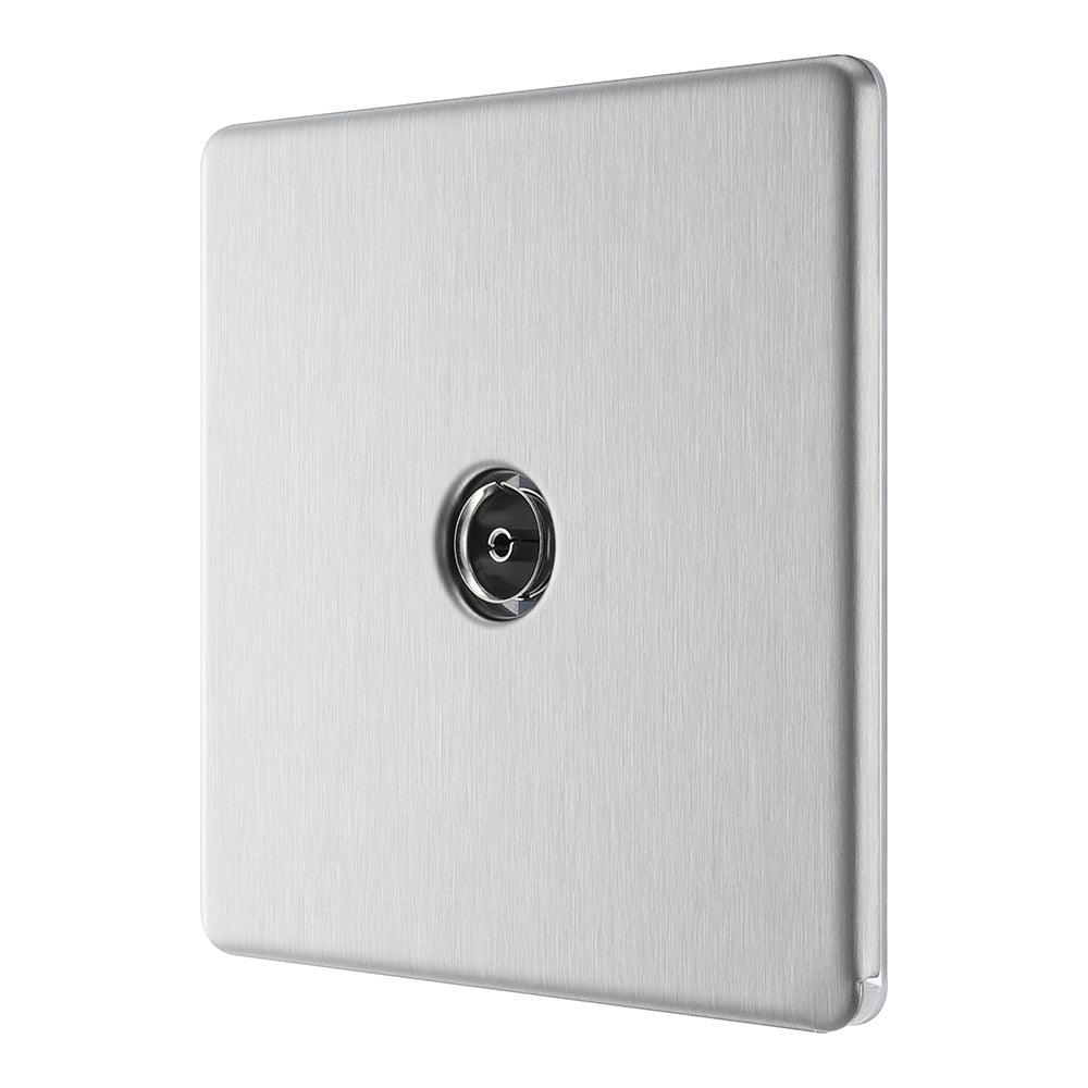 BG FBS60 Screwless Flat Plate Stainless Steel Single Socket TV/FM Co-axial Aerial Connection