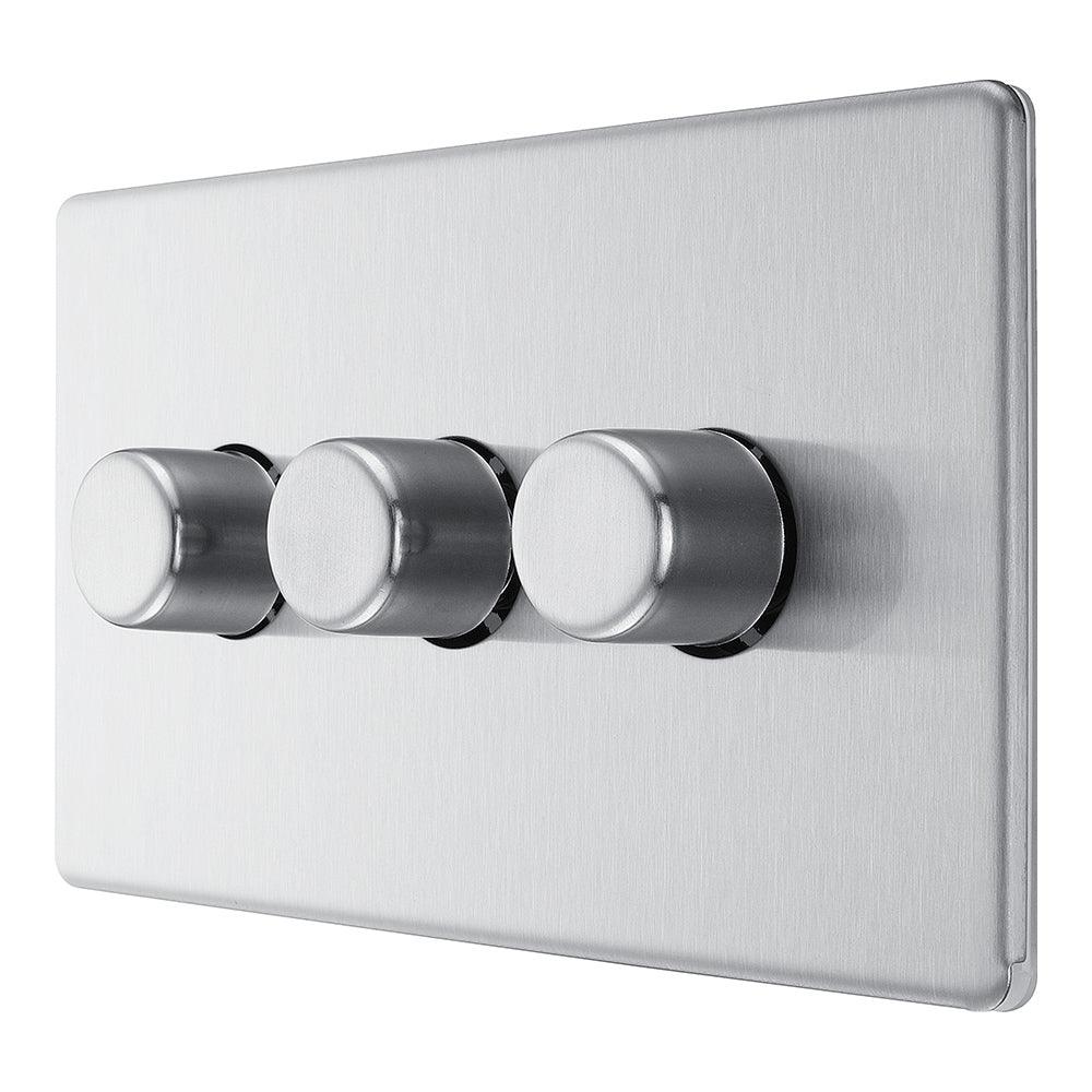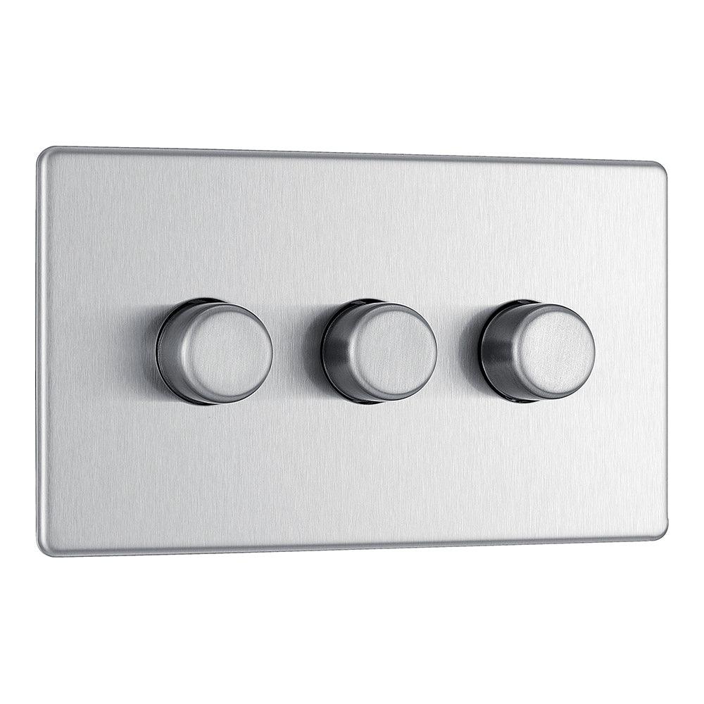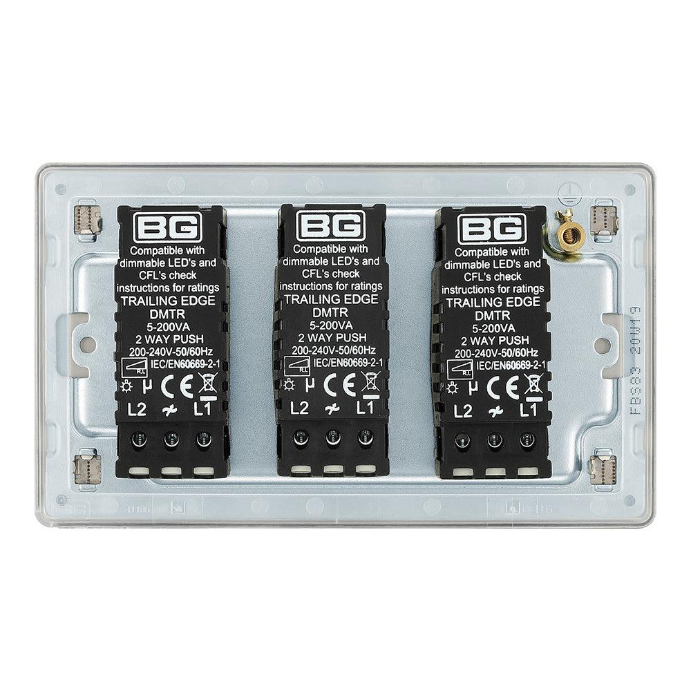 BG FBS83 Screwless Flat Plate Stainless Steel Triple Intelligent LED 2 Way Dimmer Switch