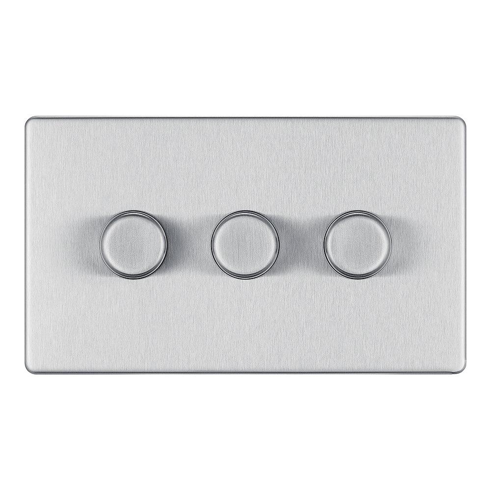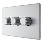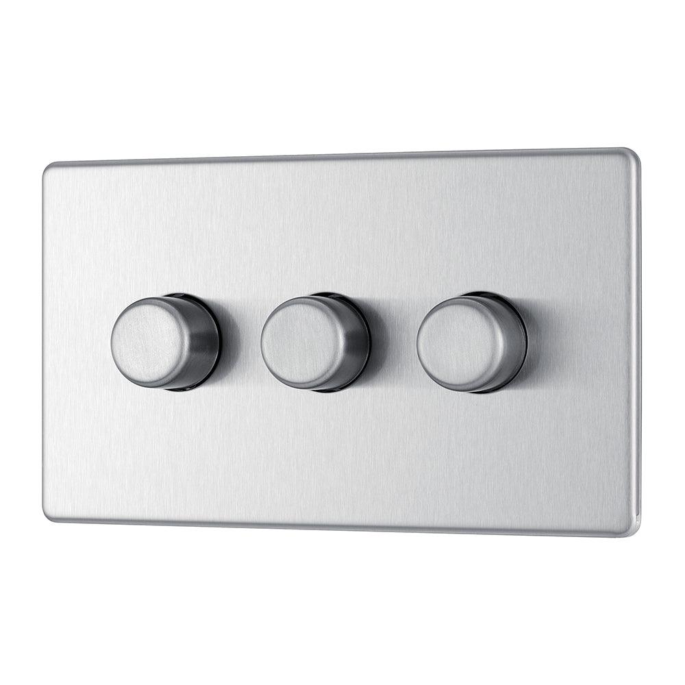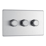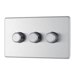 The BG FBS83 is a 3 Gang LED Dimmer Switch made from high quality components, in a sleek and stylish brushed steel finish.