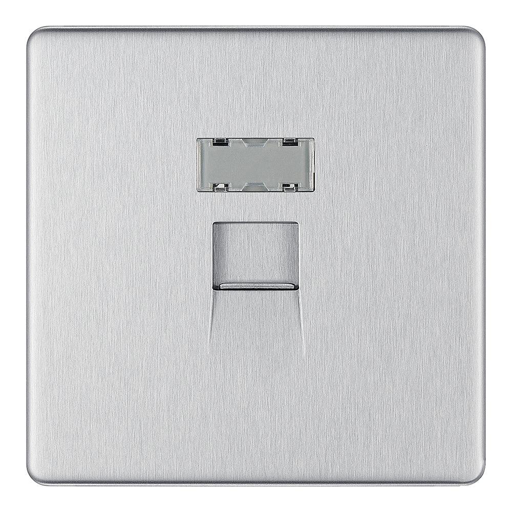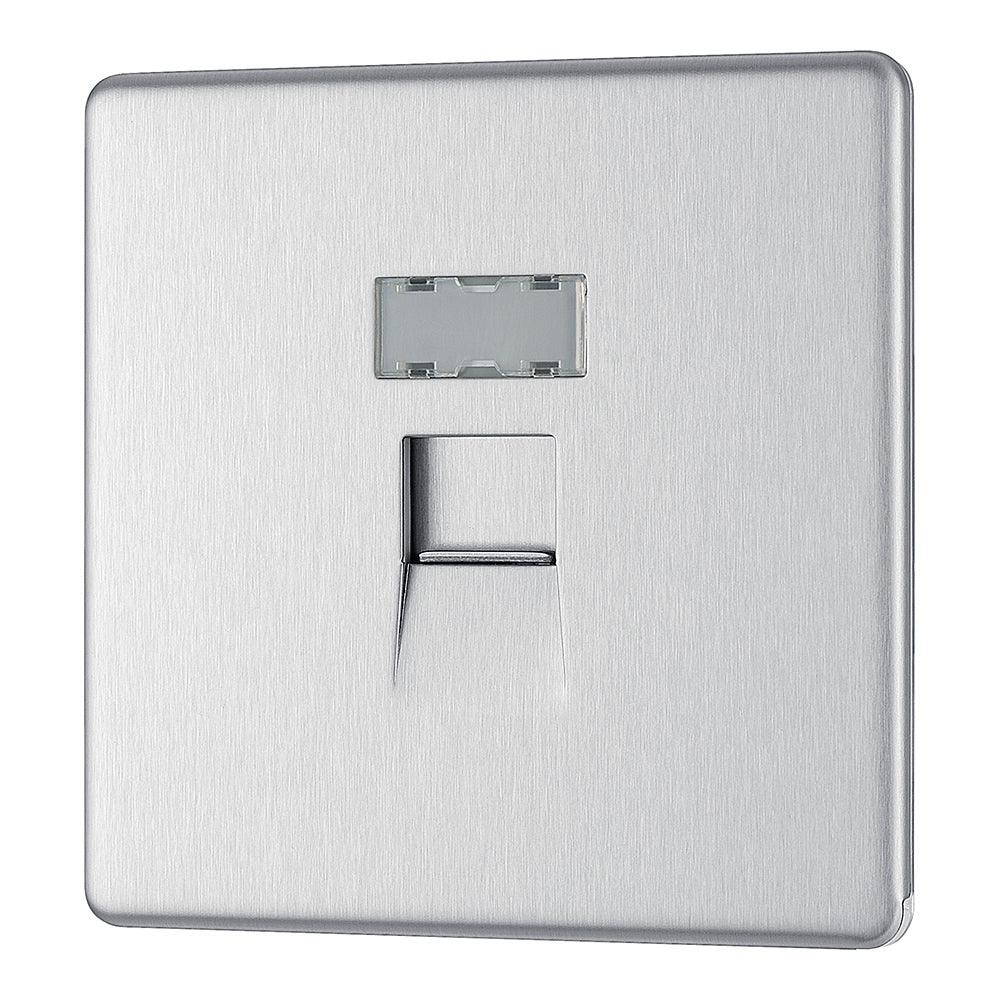 BG FBSRJ451 Screwless Flat Plate Stainless Steel Single RJ45 Data Socket