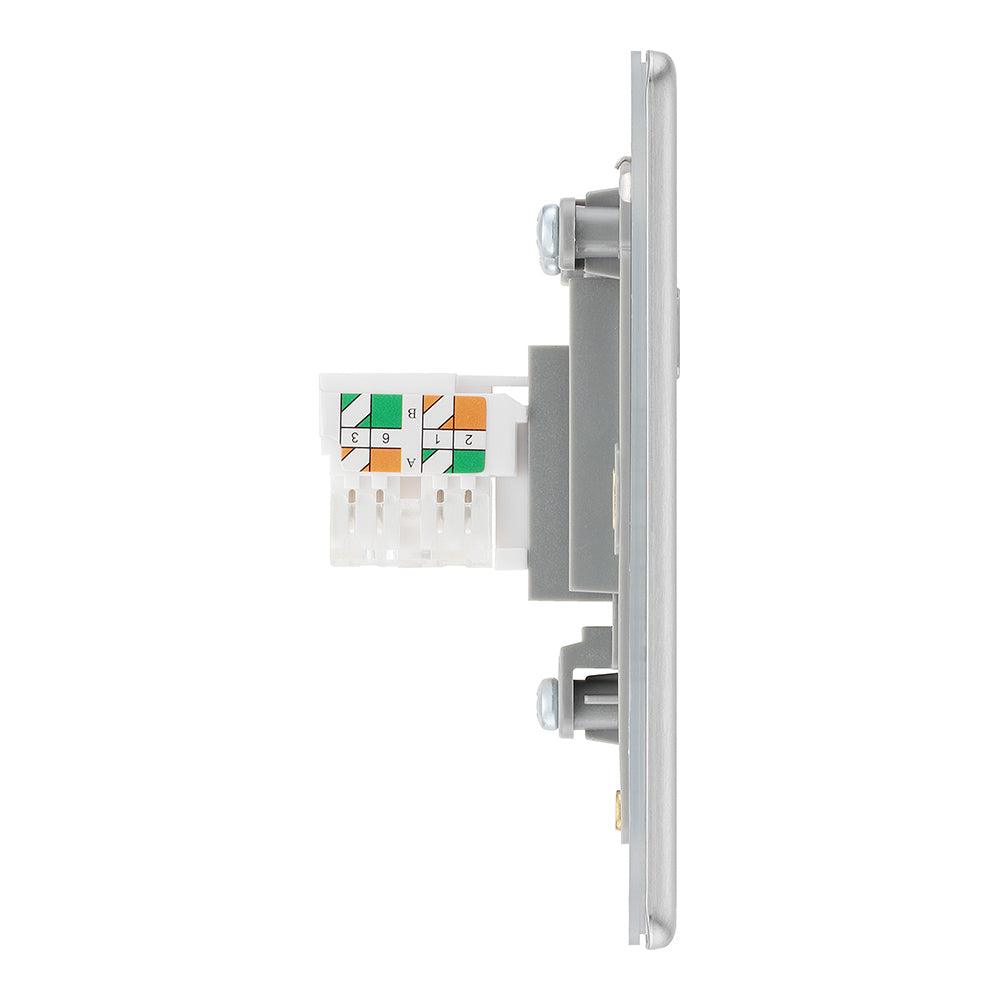 The BG FBSRJ451 is a Single RJ45 Data Socket made from high quality components, in a sleek and stylish brushed steel finish.