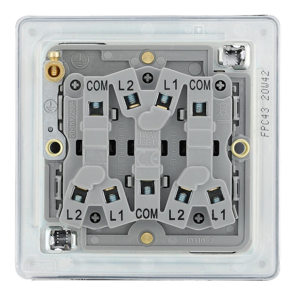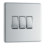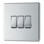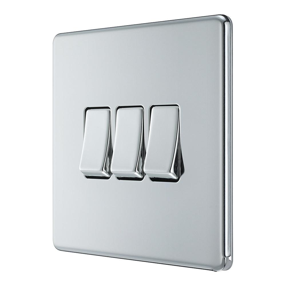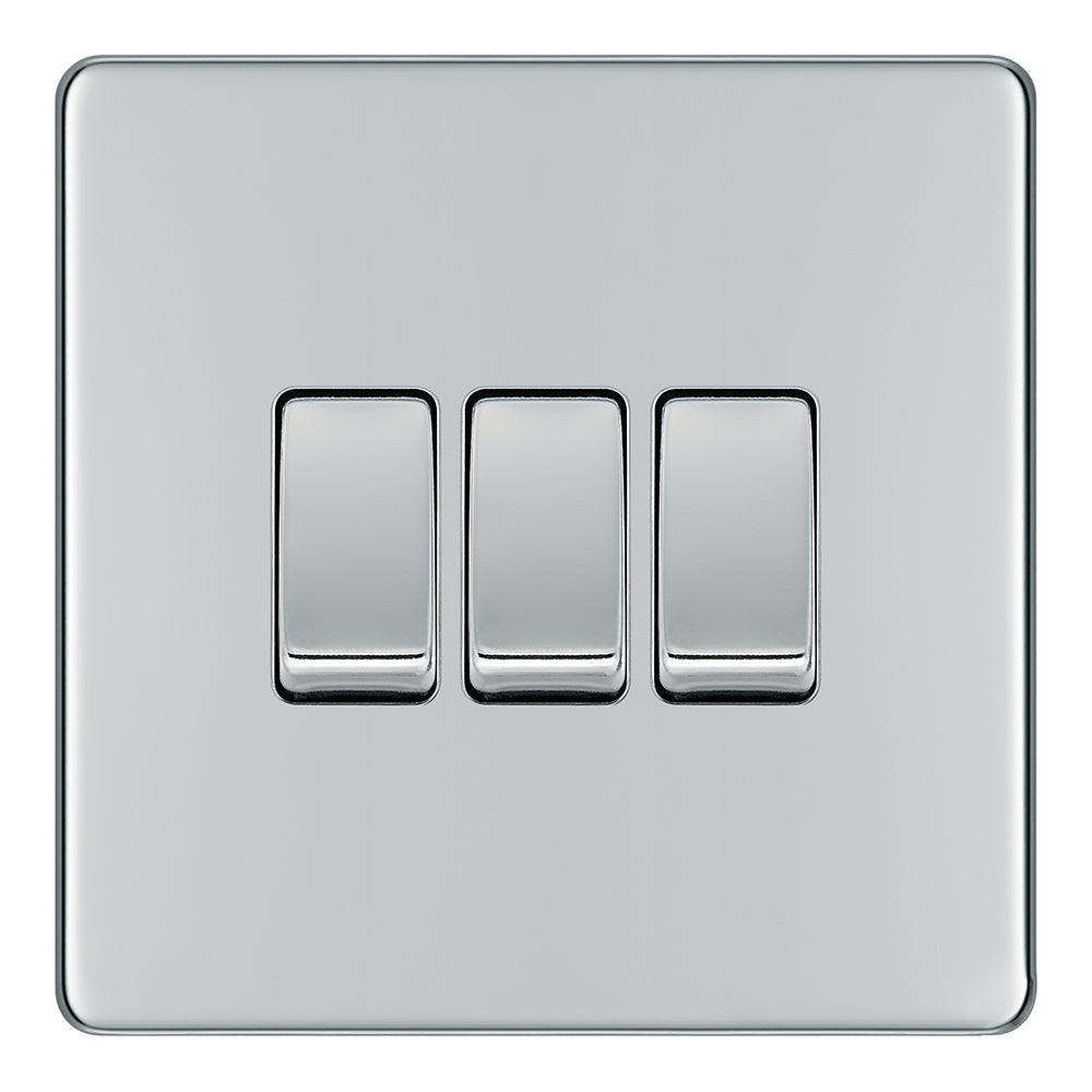 BG FPC43 Screwless Flat Plate Polished Chrome Triple Switch 10A 2 Way