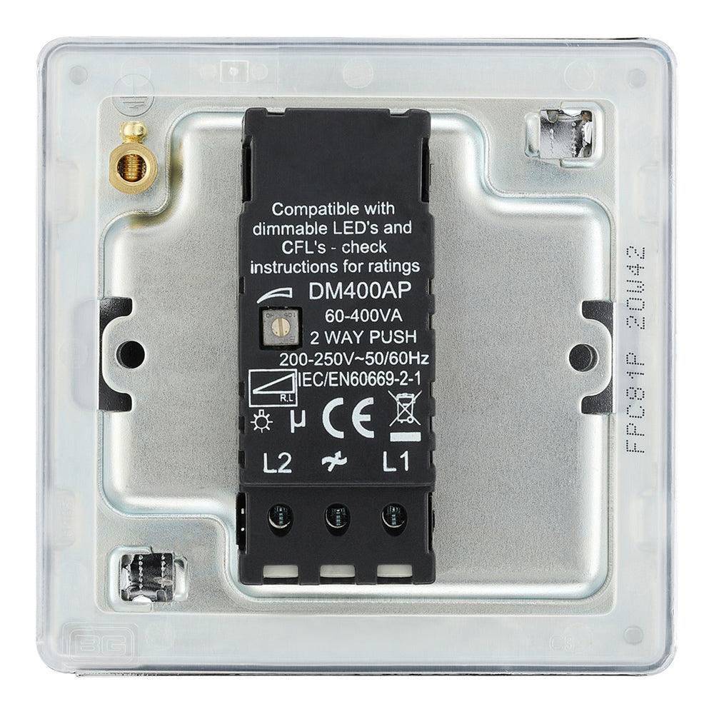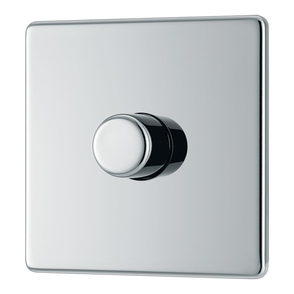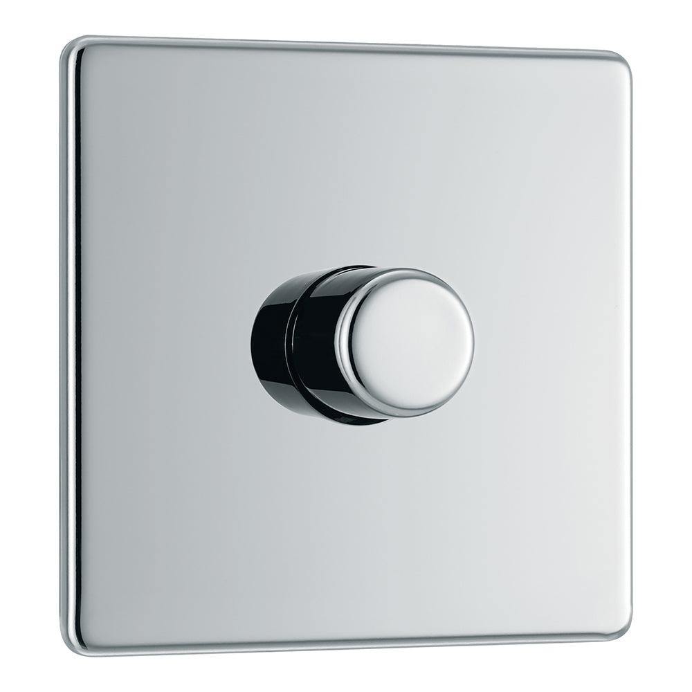 BG FPC81P Screwless Flat Plate Polished Chrome 200W Single 2 Way Dimmer Switch