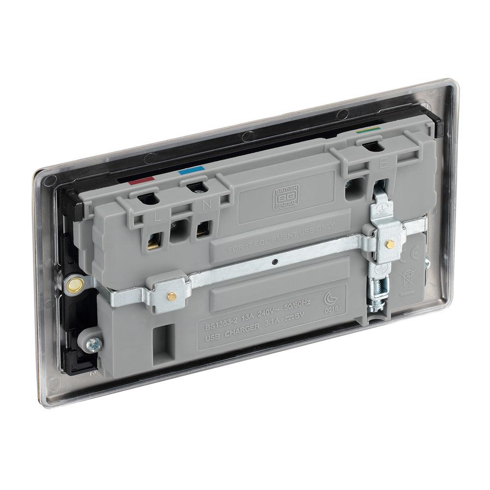 BG NAB22UAC45B Antique Brass Double Switched 13A Socket with USB Charging - USB A+C Sockets (45W)