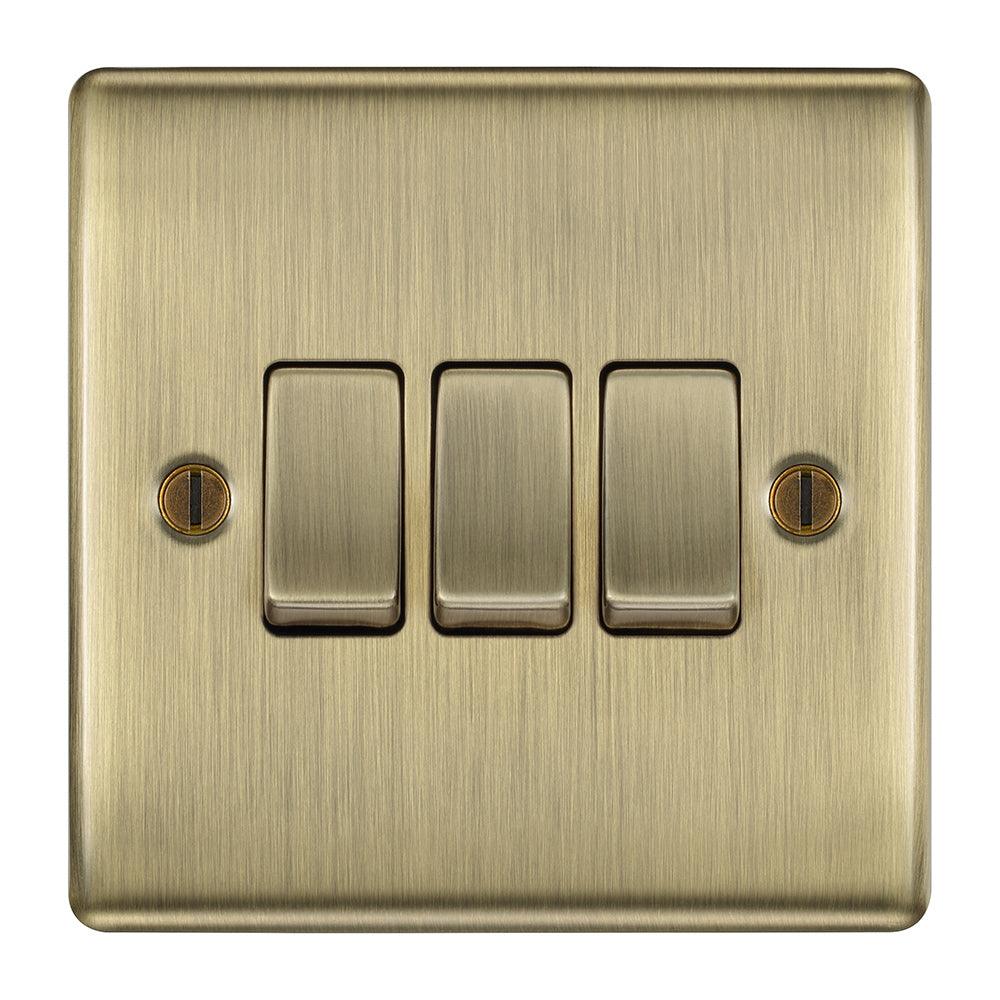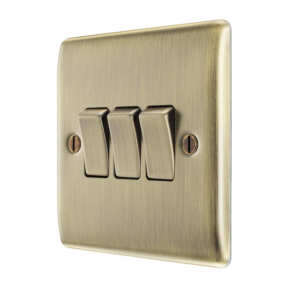 BG NAB43 Antique Brass Triple Switch 10A 2 Way
